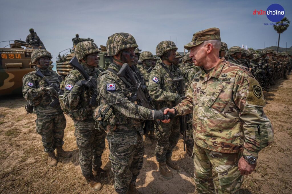 วันที่ 3 มี.ค.2566 พลเรือเอก เชิงชาย ชมเชิงแพทย์ ผู้บัญชาการทหารเรือ พร้อมด้วยนายเกว็นโดลิน คาร์ดโน อัครราชทูตที่ปรึกษา ณ สถานเอกอัครราชทูตสหรัฐอเมริกาประจำประเทศไทย และนายมุนซึงฮยอน (Moon Seoung-hyun) เอกอัครราชทูตสาธารณรัฐเกาหลีประจำประเทศไทย ร่วมตรวจเยี่ยมการฝึกการยุทธ์สะเทินน้ำสะเทินบก ในการฝึกคอบร้าโกลด์ 2023 ณ สนามฝึกกองทัพเรือ หมายเลข 15 หาดยาว อำเภอสัตหีบ จังหวัดชลบุรี