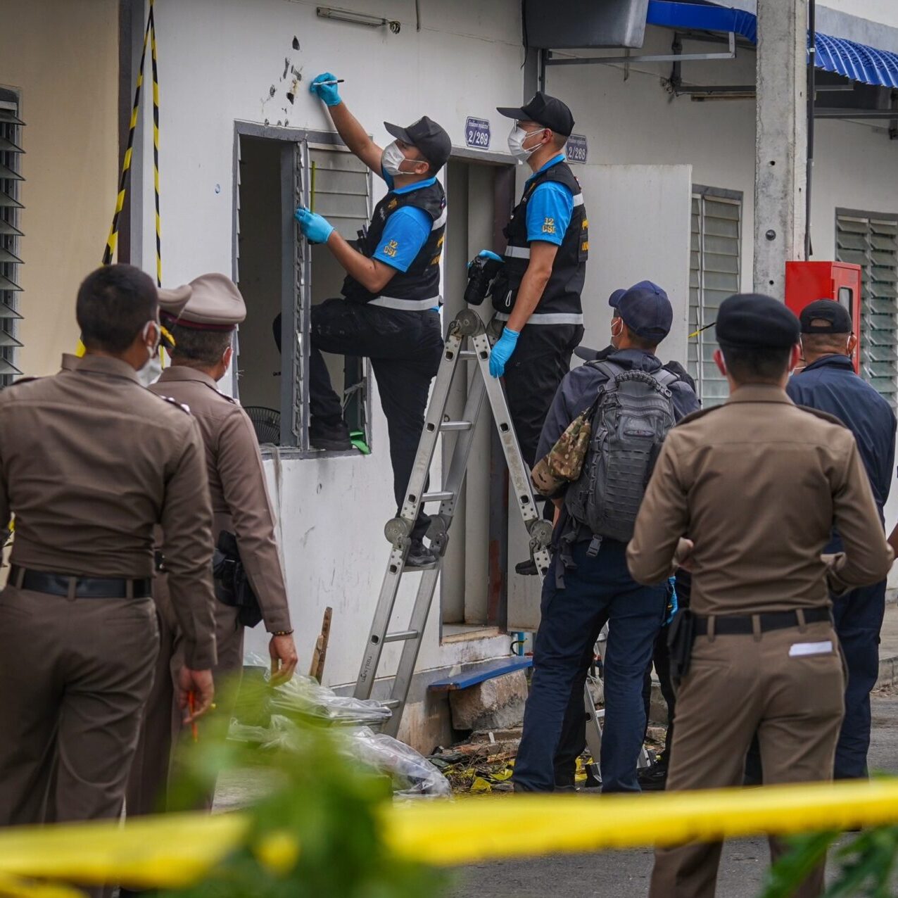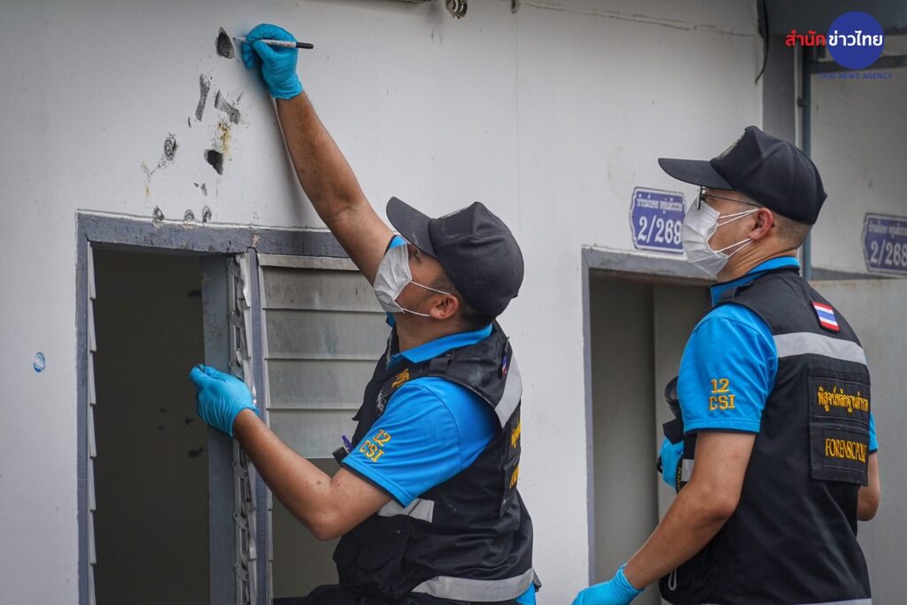 16 มี.ค.66 พลตำรวจตรีอรรถพล อนุสิทธิ์ ผู้บังคับบัญชาการตำรวจนครบาล 2 พร้อมเจ้าหน้าที่พิสูจน์หลักฐาน ลงพื้นที่ตรวจดูหลักฐานเพิ่มเติมในที่เกิดเหตุ ระบุว่า เมื่อวานมีการกันพื้นที่เก็บหลักฐานไปโดยละเอียดแล้ว ในวันนี้ก็ประชุมกันแล้วว่าจะเก็บหลักฐานเพิ่มเติม ทั้งวิถีกระสุนว่ามาจากทางไหน และในวันนี้มีการนำหุ่นมาจำลองสถานการณ์ในการปฏิบัติงานของเจ้าหน้าที่ว่ามียุทธวิธีอย่างไร ส่วนหนึ่งคือต้องนำใส่ในสำนวนคดี