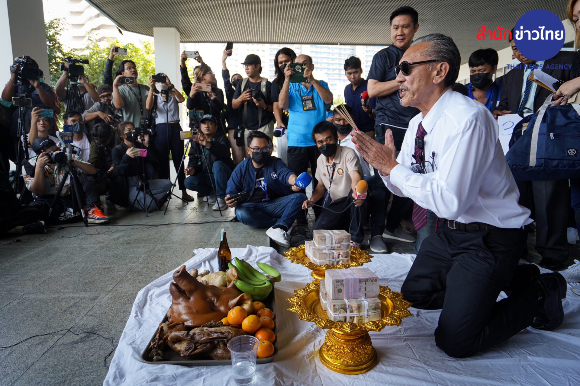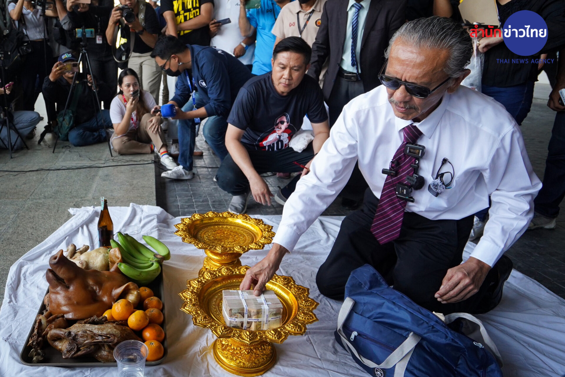 31 มี.ค.66 ที่กองบังคับการปราบปราม นายชูวิทย์ กมลวิศิษฎ์ นำเงินจำนวน 6 ล้านบาท ส่งมอบให้ พล.ต.ต.มนตรี เทศขัน ผู้บัญชาการตำรวจปราบปราม โดยก่อนคืนเงิน “ชูวิทย์” ได้นำผ้าขาวปูที่พื้น พร้อมกับวางของเซ่นไหว้ ประกอบด้วย ไก่ หัวหมู เป็ด ผลไม้ สุรา โดยระบุว่า ต้องการจะไหว้สัมภเวสี ตามความเชื่อ จากนั้นจึงเรียงเงินสดที่เป็นธนบัตร 1,000 บาท วางซ้อนกันบนพาน มูลค่ารวม 6 ล้านบาท