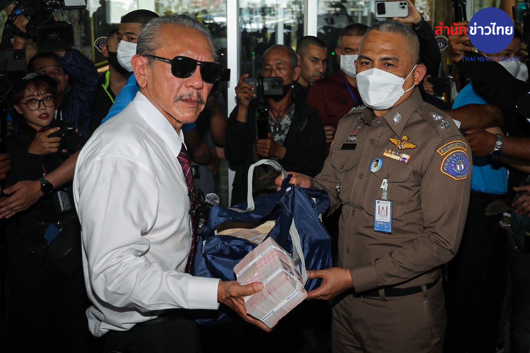 ก่อนนำเงินสดใส่กระเป๋า เพื่อมอบเงินดังกล่าวให้กับ พล.ต.ต.มนตรี เทศขัน ผู้บังคับการปราบปราม บนอาคารกองบังคับการปราบปราม ให้เป็นของกลางในคดี