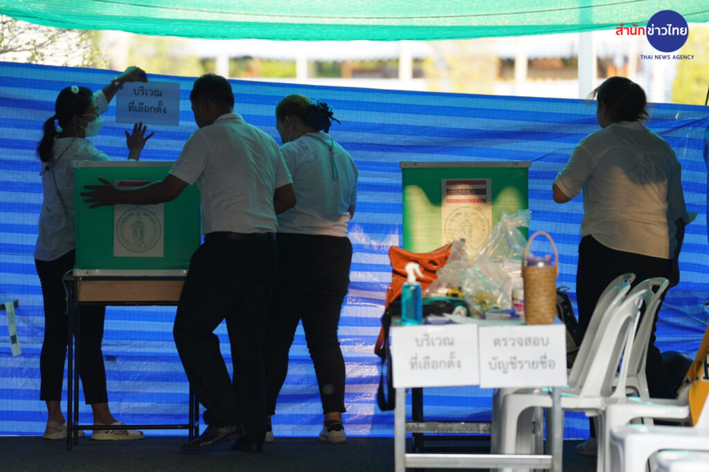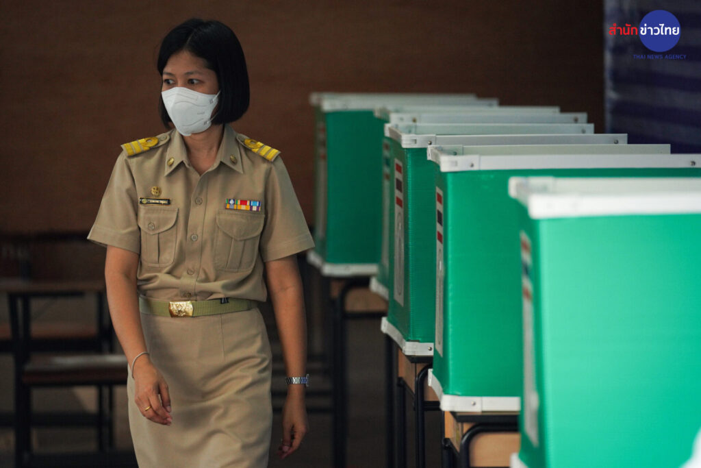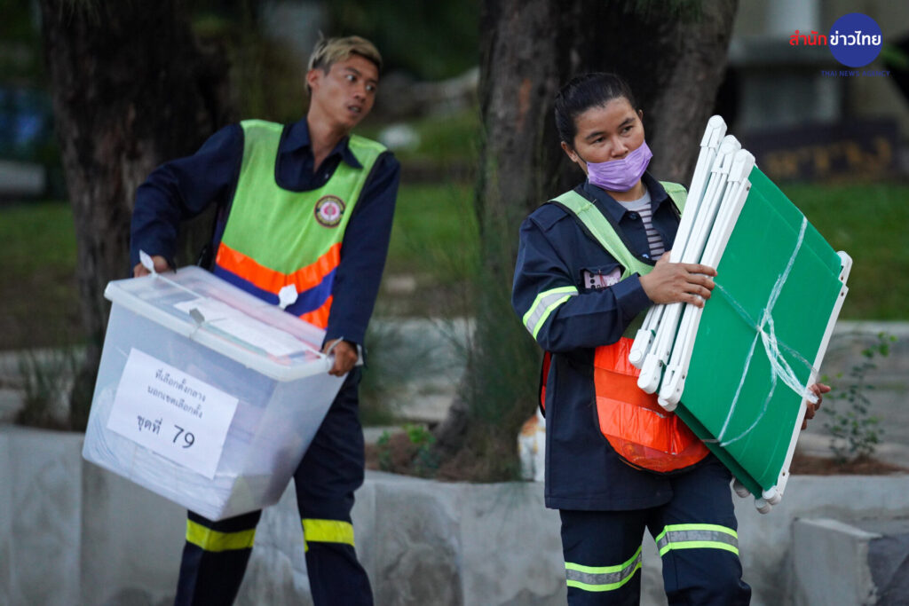 7 พ.ค.2566 ที่หน่วยเลือกตั้งล่วงหน้า มหาวิทยาลัยรามคำแหง เจ้าหน้าที่เตรียมความพร้อม จัดสถานที่ก่อนเปิดให้ประชาชนที่ลงทะเบียนเลือกตั้งล่วงหน้า มาใช้สิทธิเลือกตั้ง ในเวลา 08.00 น.