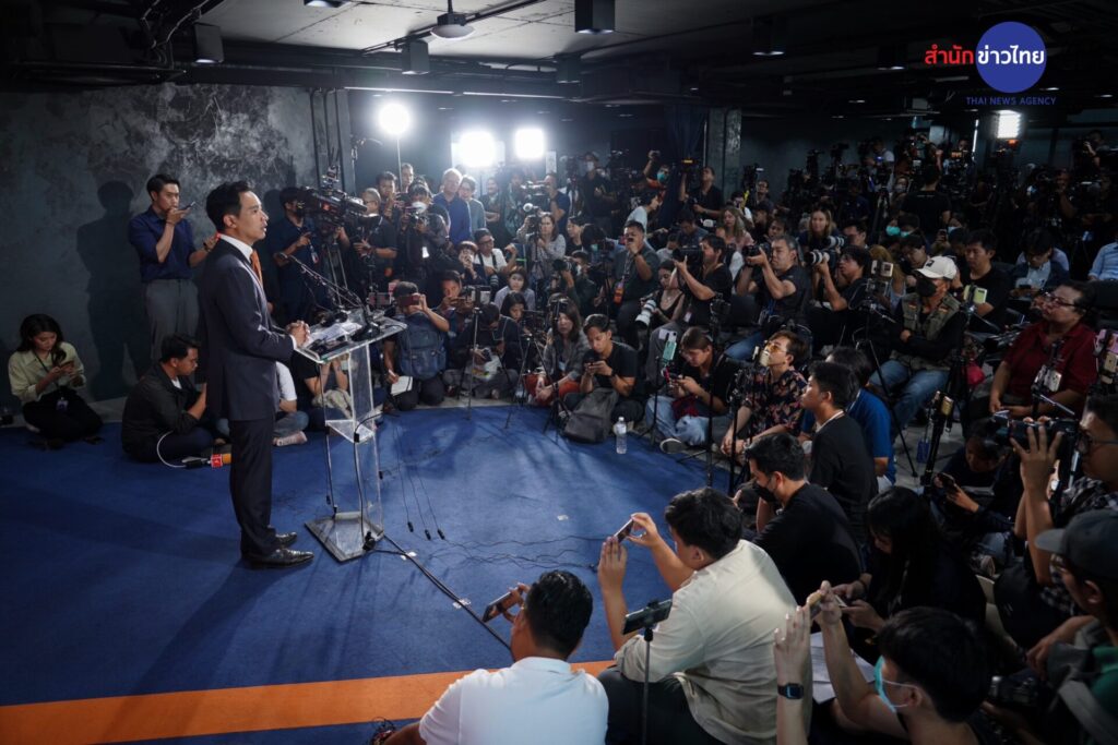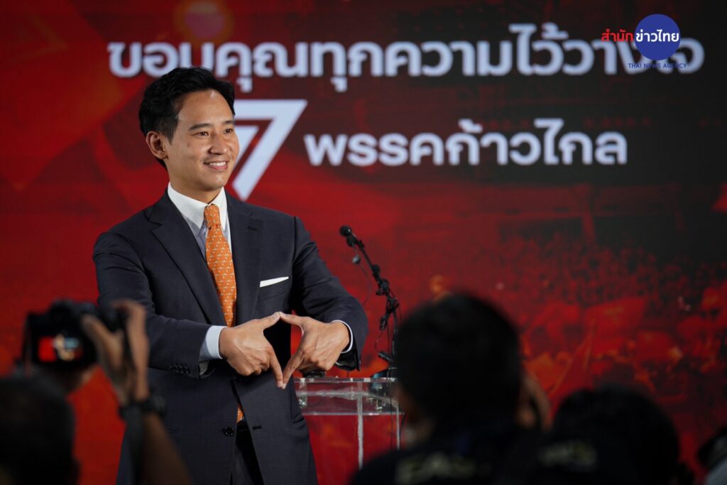 15 พ.ค.66 นายพิธา ลิ้มเจริญรัตน์ หัวหน้าพรรคก้าวไกล แถลงข่าวหลัง กกต. ประกาศผลคะแนนเลือกตั้งอย่างไม่เป็นทางการ ว่าพรรคก้าวไกลได้จำนวน ส.ส. เป็นอันดับ 1 ว่า พรรคก้าวไกล พร้อมจัดตั้งรัฐบาลกับพรรคฝ่ายค้านเดิม รวม 6 พรรค “ก้าวไกล-เพื่อไทย-ประชาชาติ-ไทยสร้างไทย-เสรีรวมไทย-เป็นธรรม 309 เสียง ปิดประตูตั้งรัฐบาลเสียงข้างน้อย เผย ต่อสายหา “อุ๊งอิ๊ง” เจรจาร่วมรัฐบาลแล้ว เตรียม ตั้งทีมเจรจาจัดตั้งรัฐบาล เซ็นเอ็มโอยูประกาศนโยบายที่จะดำเนินการ บอกพร้อมนั่งเก้าอี้นายกฯ ควบ “กลาโหม” ไม่กังวล ส.ว.ยึกยัก ไม่โหวตสนับสนุน มั่นใจวุฒิสภาไม่กล้าฝืนฉันทามติประชาชน
