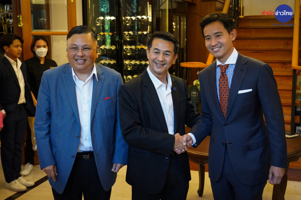 17 พ.ค.2566 บรรยากาศ 6 พรรคการเมือง เข้าร่วมถกนัดแรก ที่ร้านอาหารย่านถนนสุโขทัย เพื่อวางแผนจัดตั้งรัฐบาล นำโดย นายพิธา ลิ้มเจริญรัตน์ หัวหน้าพรรคก้าวไกล และแคนดิเดตนายกรัฐมนตรี พร้อมด้วยตัวแทนจากพรรคเพื่อไทย พรรคไทยสร้างไทย พรรคเสรีรวมไทย พรรคประชาชาติ และพรรคเป็นธรรม ท่ามกลางสื่อมวลชนติดตามทำข่าวจำนวนมาก