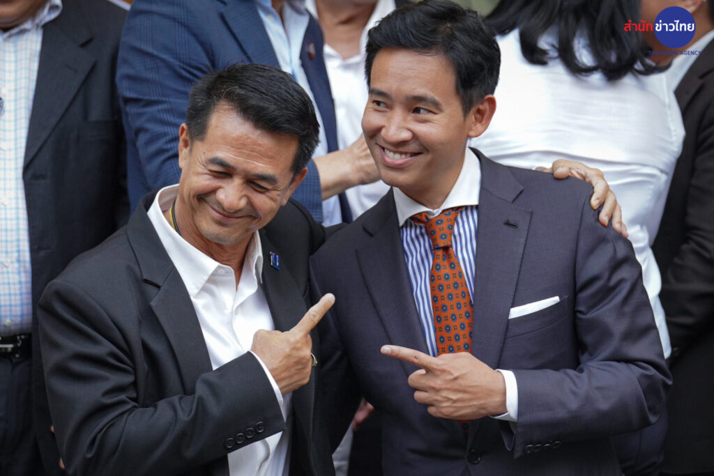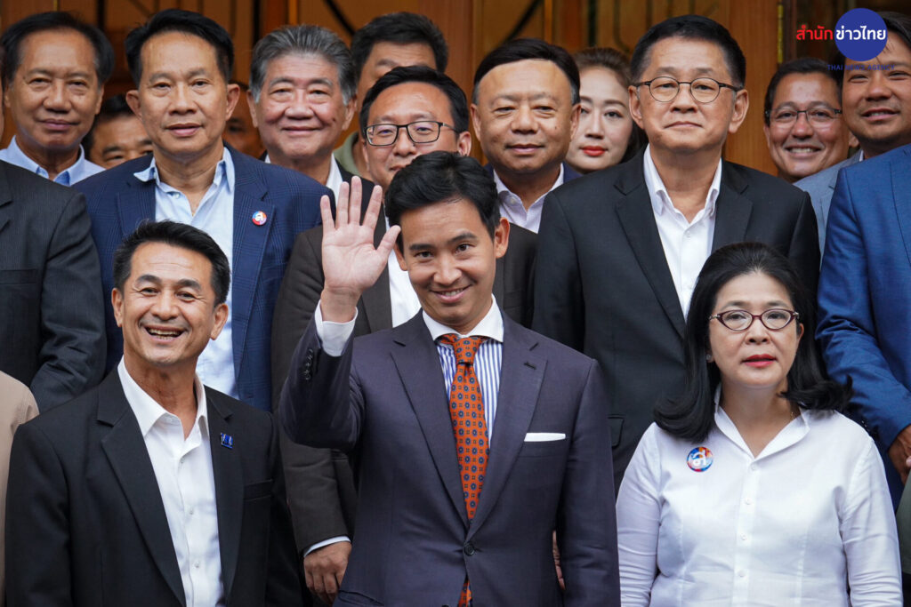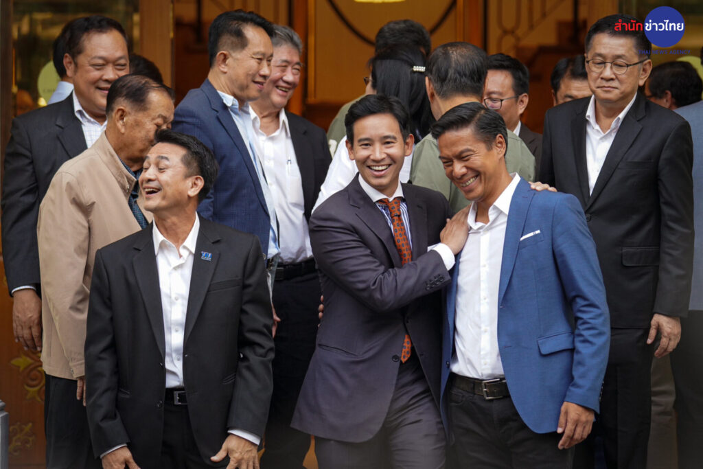 “พิธา” พร้อม 6 พรรคการเมือง ออกมาทักทายสื่อ ถ่ายรูปหมู่ ร่วมพูดคุยจัดตั้งรัฐบาล