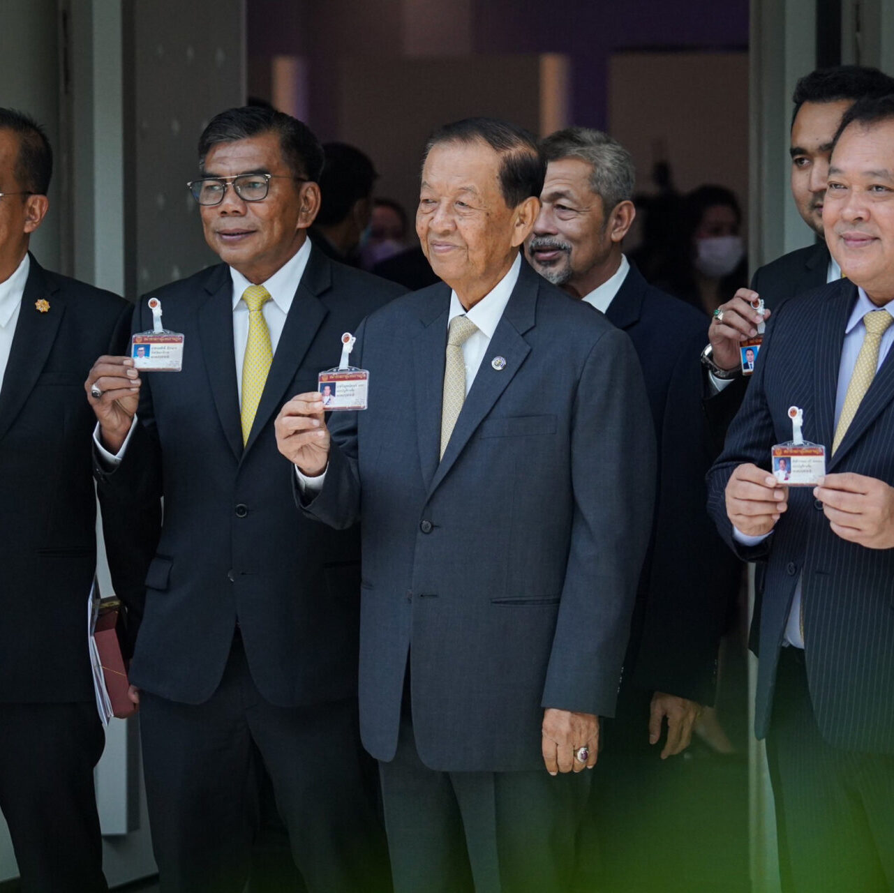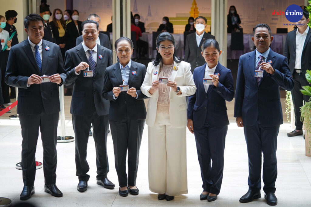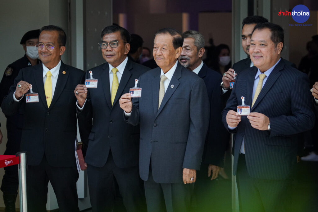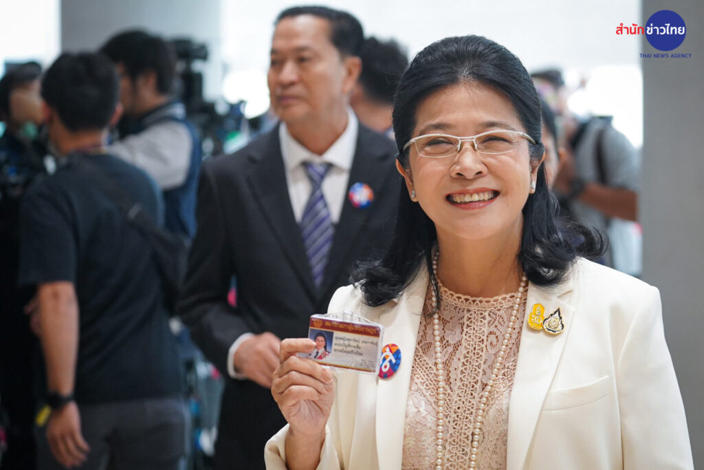 ด้าน คุณหญิงสุดารัตน์ เกยุราพันธุ์ หัวหน้าพรรคไทยสร้างไทย นำทีม ส.ส.ป้ายแดง พรรคไทยสร้างไทย ทั้ง 6 คน เดินทางเข้ารายงานตัวและรับบัตรประจำตัวต่อรัฐสภา