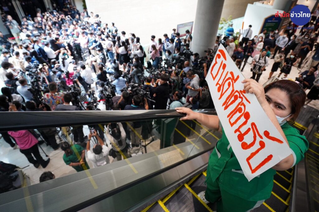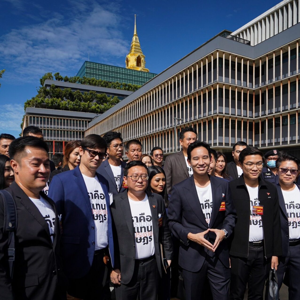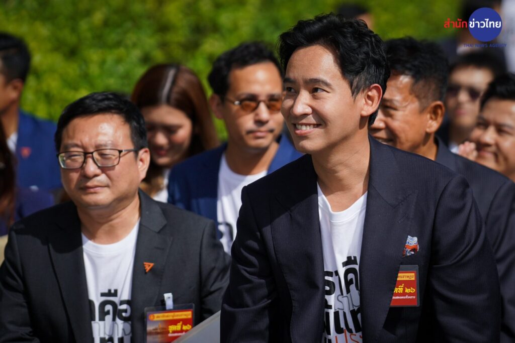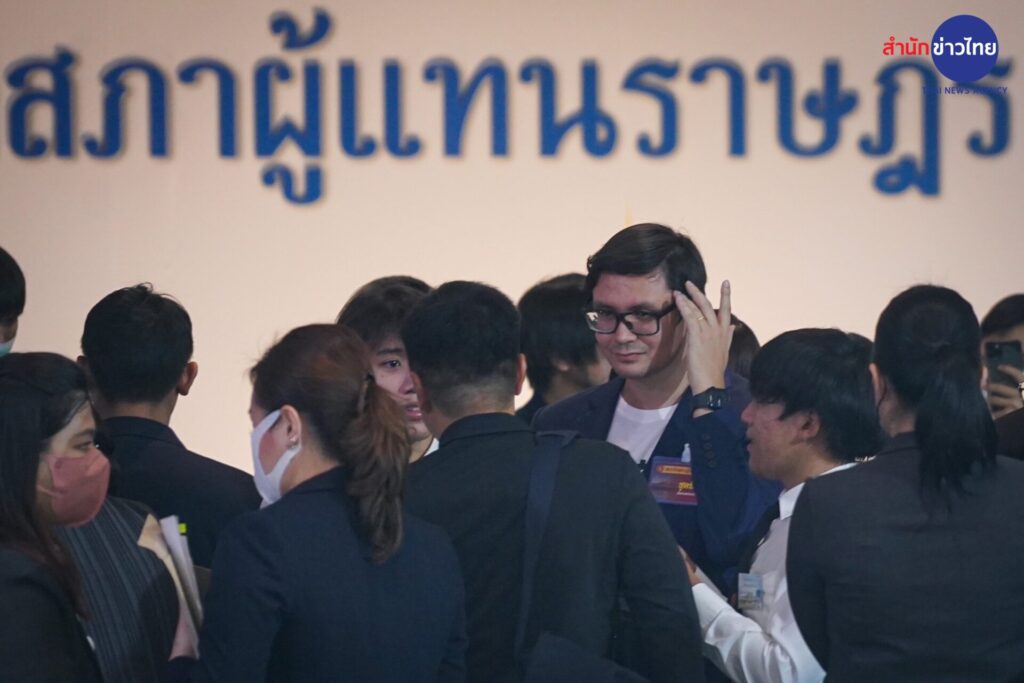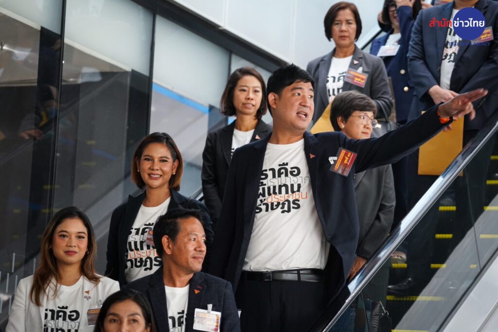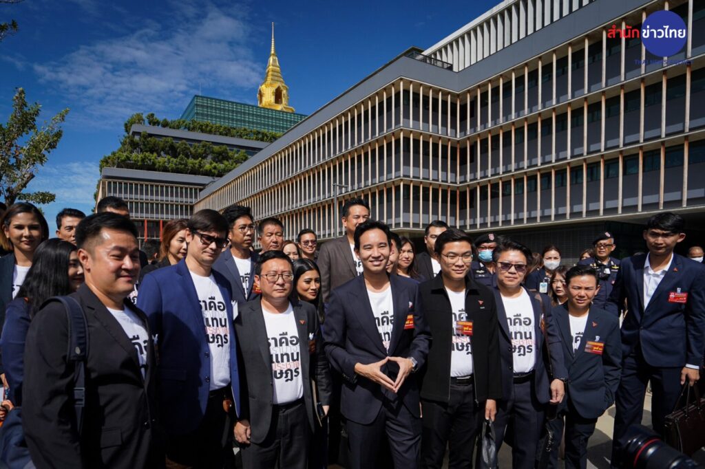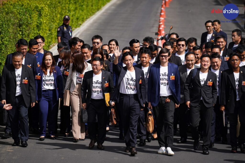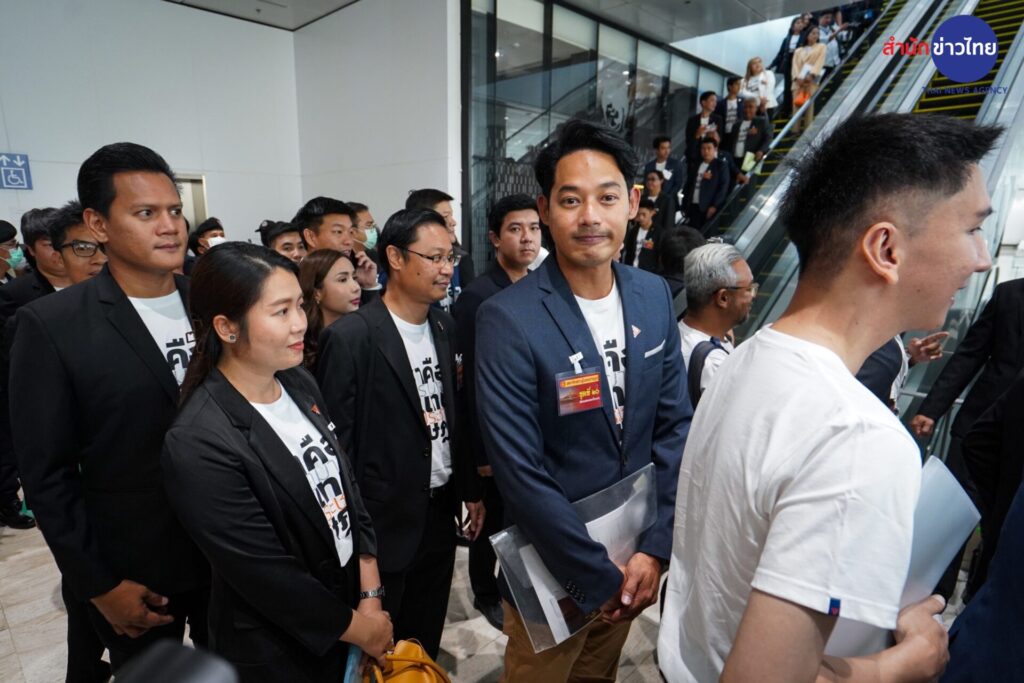 27 มิ.ย.2566 บรรยากาศรายงานตัวของ ส.ส.พรรคก้าวไกล นายพิธา ลิ้มเจริญรัตน์ หัวหน้าพรรคก้าวไกลและแคนดิเดตนายกรัฐมนตรีของพรรค เดินทางด้วยรถบัสพร้อม กับส.ส.ของพรรคทุกคน มารายงานตัวที่รัฐสภา โดย ส.ส.ทุกคนสวมเสื้อยืดคอกลมสีขาวสกรีนคำว่า “เราคือผู้แทนราษฎร เรามาจากประชาชน” พร้อมใส่สูท หรือแจ็กเก็ตทับ ทันทีที่มาถึงนายพิธา นำ ส.ส.ก้าวไกล เข้ารายงานตัวที่ชั้น B1 ส ซึ่งมีเจ้าหน้าที่สภารอต้อนรับ