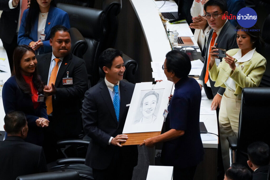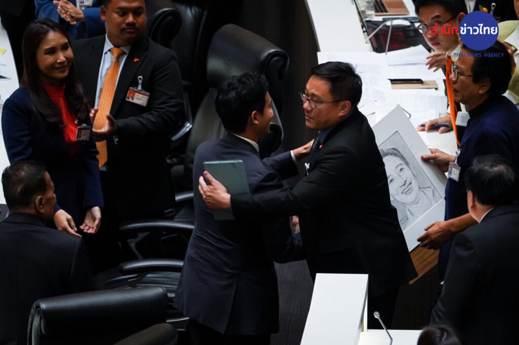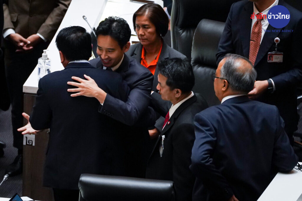 สส.ก้าวไกลร่ำไห้ หลังศาล รธน. สั่งพิธา หยุดปฏิบัติหน้าที่ สส. ขณะ “พิธา” ปลอบให้กำลังใจลูกพรรค