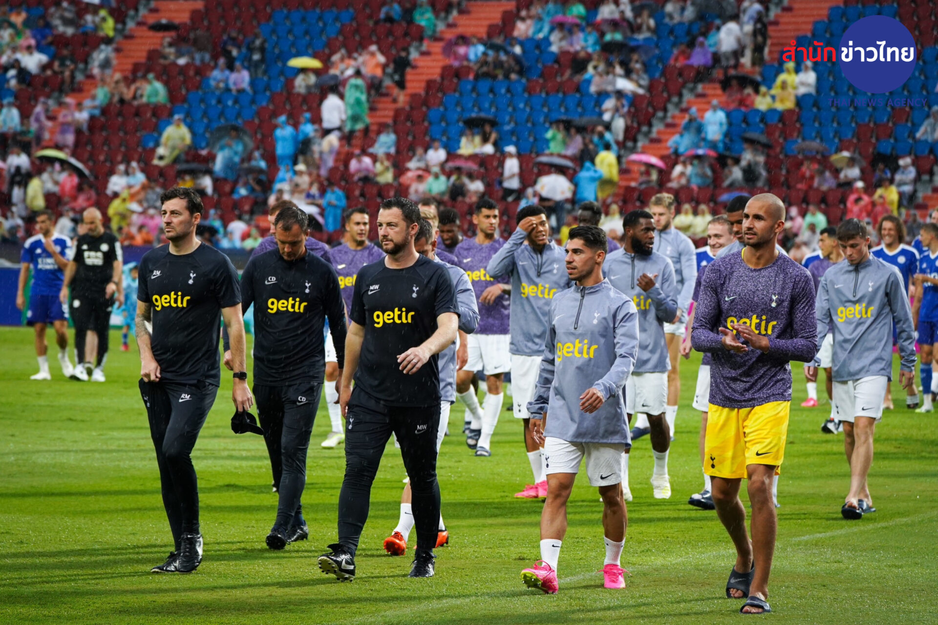 เกมฟุตบอลนัดอุ่นเครื่องปรีซีซั่น นัดประวัติศาสตร์ ท็อตแนม ฮอตสเปอร์ส ในพรีเมียร์ลีก อังกฤษ พบกับ เลสเตอร์ ซิตี้ ในแชมเปียนชิพ อังกฤษ ซึ่งเดิมจะมีขึ้นในวันนี้ (23 ก.ค.) เวลา 17.00 น. ที่สนามราชมังคลากีฬาสถาน ปรากฏว่า ก่อนเกมเริ่มราว 1 ชั่วโมง ฝนได้ตกลงมาอย่างหนัก และไม่มีทีท่าจะหยุด แม้เจ้าหน้าที่พยายามรีดน้ำออกแล้วก็ตาม จนเวลาผ่านมาถึง 17.45 น. มีการประกาศยกเลิกเกมแมตช์นี้อย่างเป็นทางการ เนื่องจากสนามมีน้ำขัง และสภาพอากาศไม่เอื้ออำนวย ฝ่ายจัดการแข่งขันจึงทำตามคำแนะนำของเจ้าหน้าที่จัดการแข่งขัน เพราะสนามไม่ปลอดภัยต่อการลงเล่น เนื่องจากฝนตกหนัก