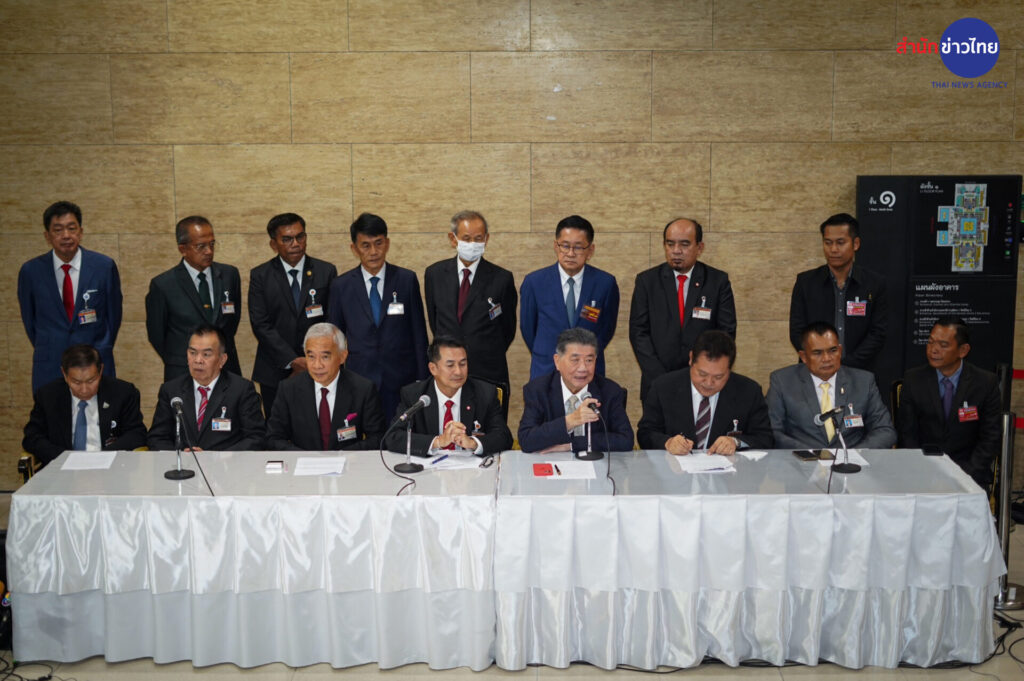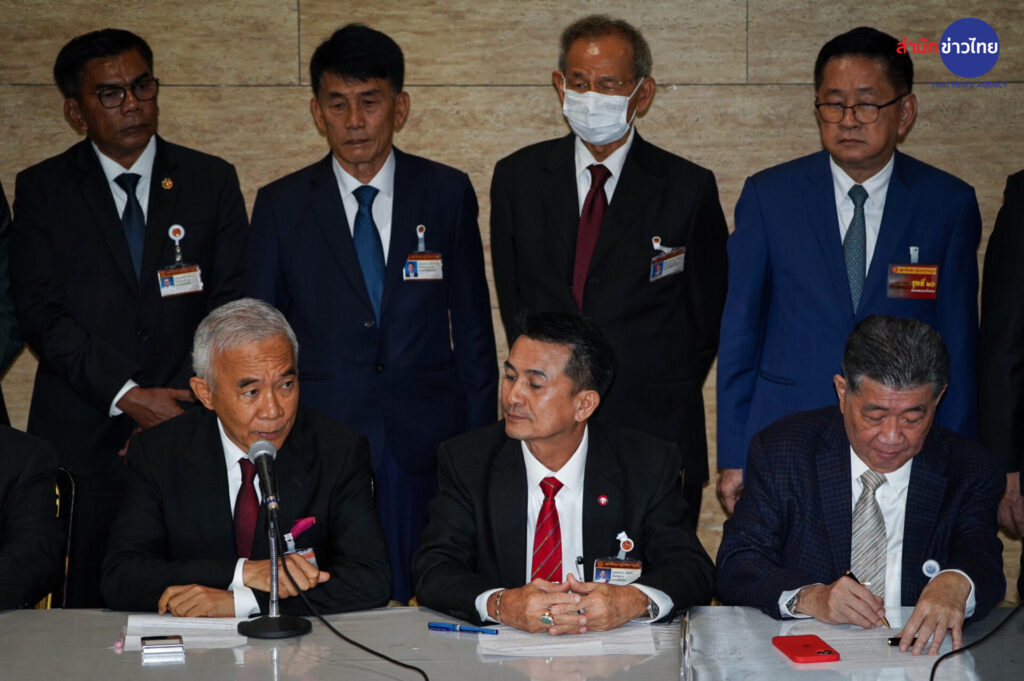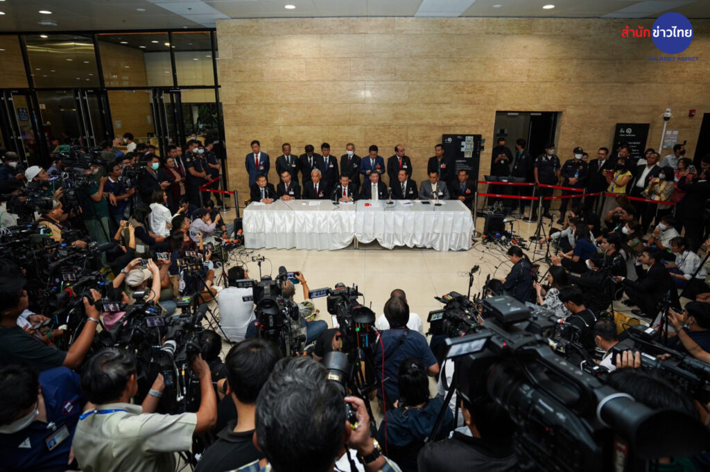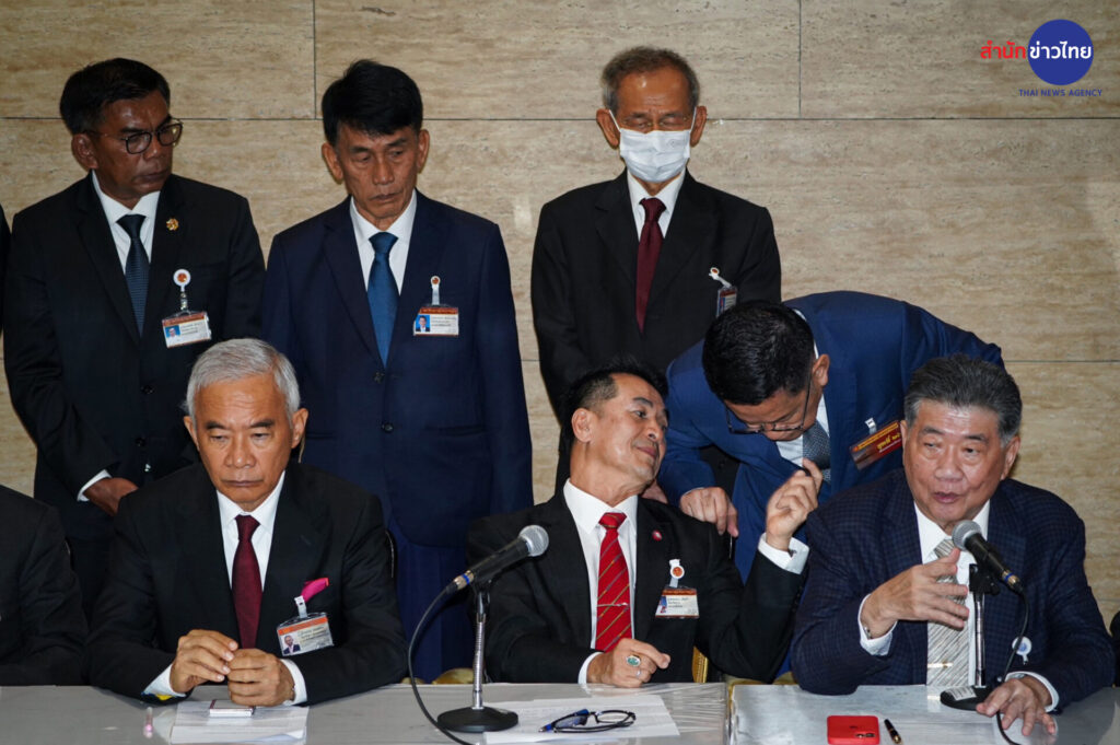 นพ.ชลน่าน ศรีแก้ว หัวหน้าพรรคเพื่อไทย พร้อมด้วยนายภูมิธรรม เวชยชัย รองหัวหน้าพรรคเพื่อไทย แถลงข่าวร่วมจัดตั้งรัฐบาล ประกอบ ด้วย พ.ต.อ.ทวี สอดส่อง สส.พรรคประชาชาติ, นายสุวัฒน์ ลิปตพัลลภ ประธานพรรคชาติพัฒนากล้า, พลตำรวจเอกเสรีพิศุทธ์ เตมียเวส หัวหน้าพรรคเสรีรวมไทย, นายเชาวฤทธิ์ ขจรพงศ์กีรติ พรรคพลังสังคมใหม่, นายบัญชา เดชเจริญศิริกุล พรรคท้องที่ไทย และนายวรเชษฐ เชิดชู เลขาธิการพรรคเพื่อไทยรวมพลัง