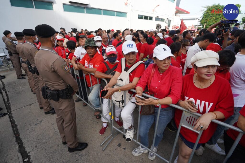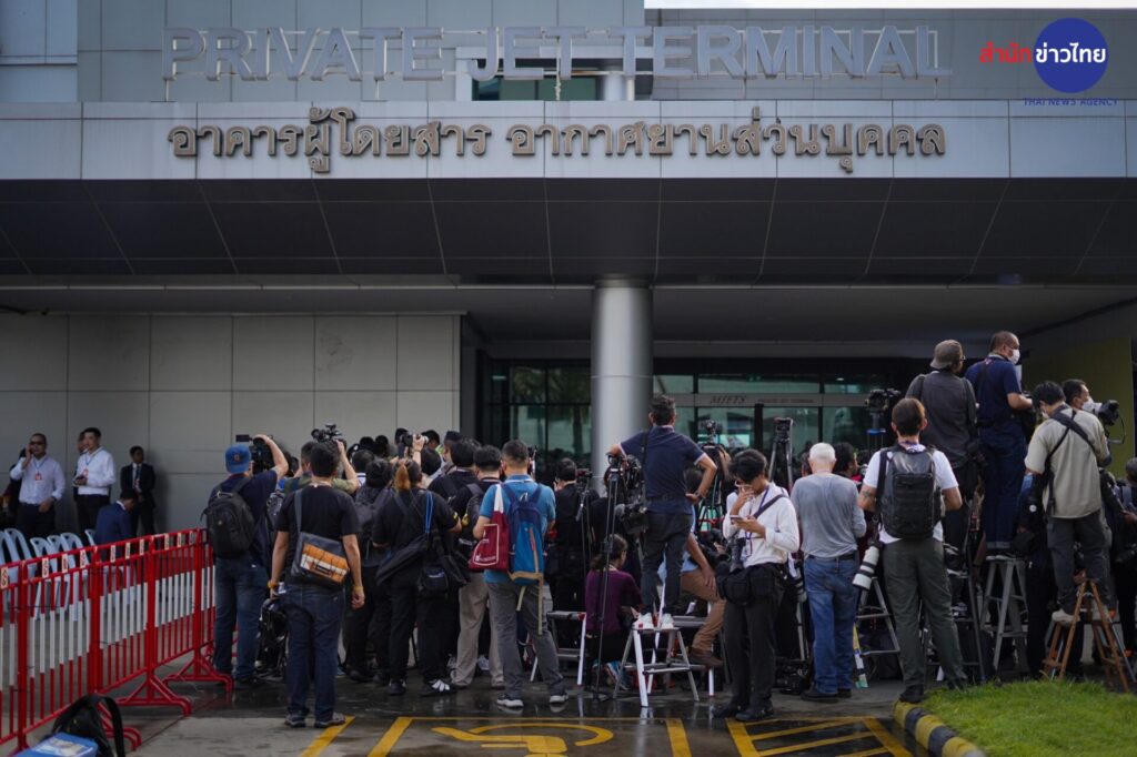 บรรยากาศก่อนการเดินทางกลับประเทศไทยของนายทักษิณ ชินวัตร อดีตนายกรัฐมนตรี ที่เดินทางมาด้วยเครื่องบินส่วนตัว ลงที่อาคารผู้โดยสารส่วนบุคคล (MJETS) ท่าอากาศยานดอนเมือง ในเวลา 9.00 น. บรรดาแกนนำพรรคเพื่อไทย นักการเมือง อดีตนักการเมือง มารอรับนายทักษิณ คึกคัก พร้อมทั้งมวลชนเสื้อแดง