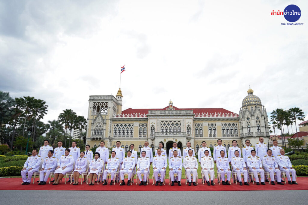 เมื่อเวลา 14.16 น. นายเศรษฐา ทวีสิน นายกรัฐมนตรีและรัฐมนตรีว่าการกระทรวงการคลัง นำคณะรัฐมนตรี (ครม.) ชุดใหม่ ถ่ายภาพร่วมกันหน้าตึกไทยคู่ฟ้า ภายหลังเข้าเฝ้าเพื่อถวายสัตย์ปฏิญาณ