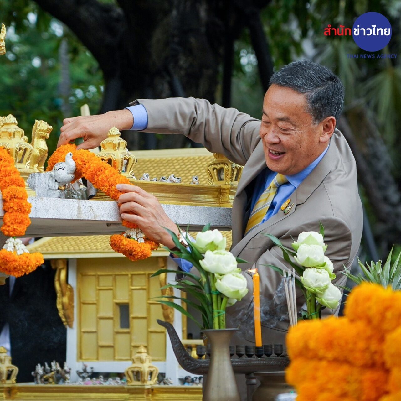 นายเศรษฐา มีสีหน้ายิ้มแย้ม พร้อมกล่าวภายหลังสักการะว่า “รู้สึกสบายใจ และขอพรให้ปกป้องบ้านเมืองในทุกๆ เรื่อง ไม่ว่าจะเป็น ภัยเศรษฐกิจ เป็นภัยสังคม ภัยความแตกแยก”