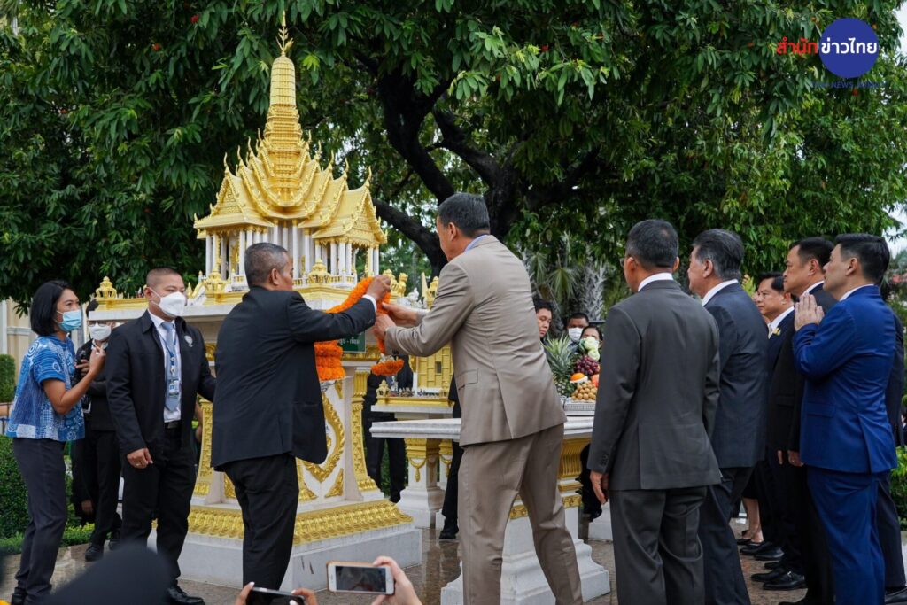 นายเศรษฐา ทวีสิน นายกรัฐมนตรีและรัฐมนตรีว่าการกระทรวงการคลัง พร้อมด้วย นายภูมิธรรม เวชยชัย รองนายกรัฐมนตรี และรมว.พาณิชย์, นายสมศักดิ์ เทพสุทิน รองนายกรัฐมนตรี,นายปานปรีย์ พหิทธานุกร รองนายกรัฐมนตรี และรมว.ต่างประเทศ, นายอนุทิน ชาญวีรกูล รองนายกรัฐมนตรี และรมว.มหาดไทย, พล.ต.อ.พัชรวาท วงษ์สุวรรณ รองนายกรัฐมนตรี และรมว.ทรัพยากรธรรมชาติและสิ่งแวดล้อม, นายพีระพันธุ์ สาลีรัฐวิภาค รองนายกรัฐมนตรี และรมว.พลังงาน, นายจักรพงษ์ แสงมณี รมช.ต่างประเทศ, นางพวงเพ็ชร ชุนละเอียด รมต.ประจำสำนักนายกฯ ถือฤกษ์เวลา 08.00 น. สักการะพระพรหมบนตึกไทยคู่ฟ้า ศาลพระภูมิเจ้าที่ และศาลตา ศาลยาย สิ่งศักดิ์สิทธิ์ประจำทำเนียบรัฐบาล เพื่อความเป็นสิริมงคล ในการเข้าปฏิบัติหน้าที่ที่ทำเนียบรัฐบาลวันแรก ก่อนเริ่มประชุมคณะรัฐมนตรี (ครม.) นัดพิเศษ