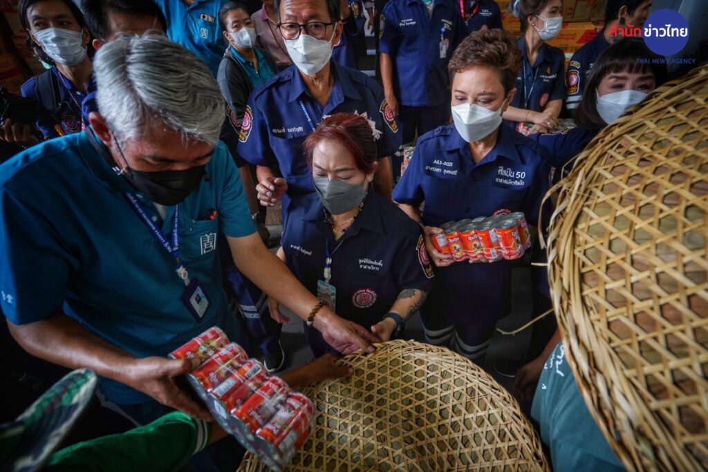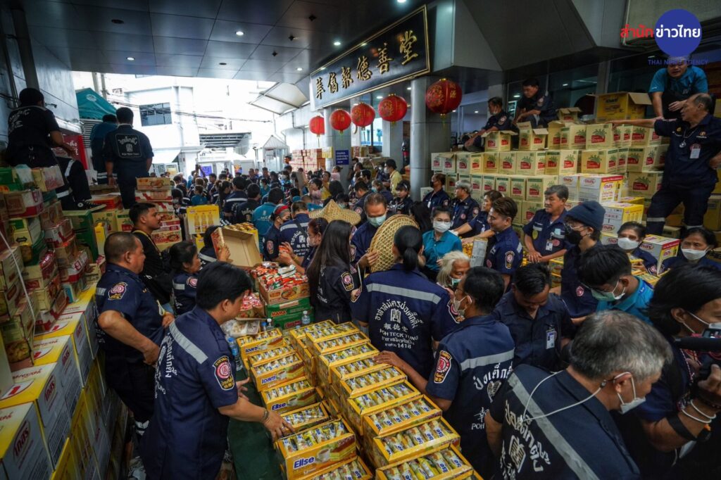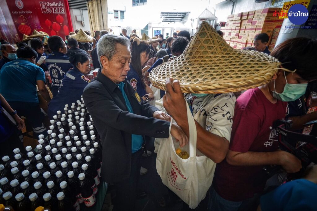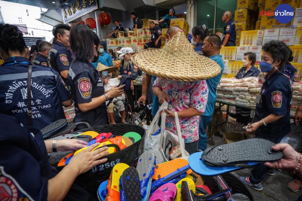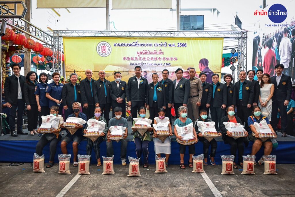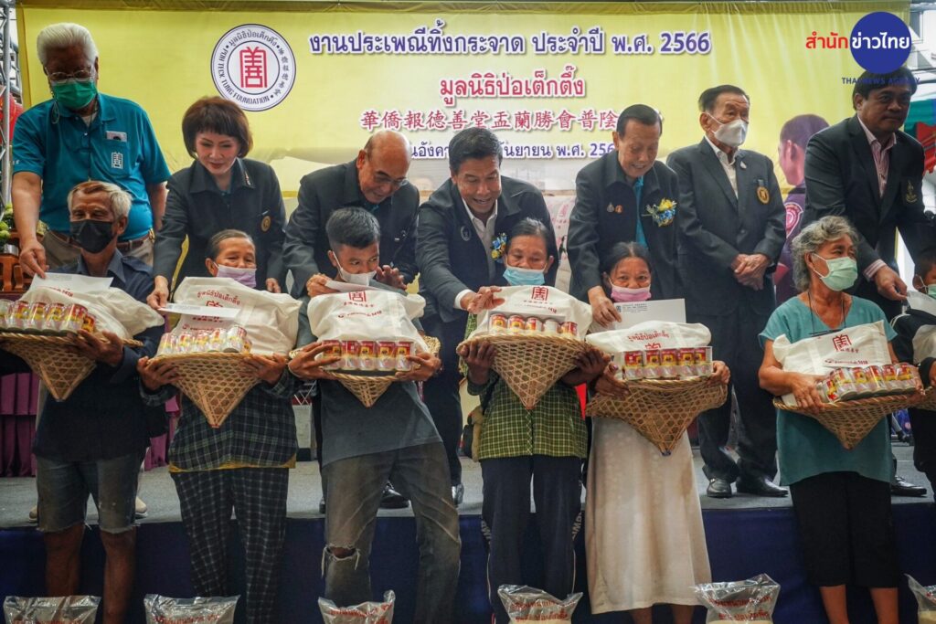 รองประธานกรรมการ พร้อมด้วยคณะกรรมการ และผู้ช่วยกรรมการมูลนิธิฯ จัดพิธีแจกเครื่องอุปโภคบริโภค ในงานประเพณีทิ้งกระจาด ประจำปี 2566 จำนวน 20,000 ชุด ให้แก่ประชาชนผู้ยากไร้ทั้งในกรุงเทพฯ และต่างจังหวัดที่เดินทางมารอรับกันอย่างเนืองแน่น
