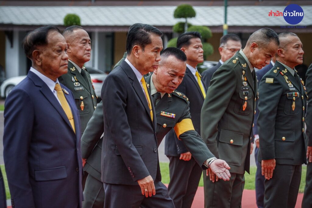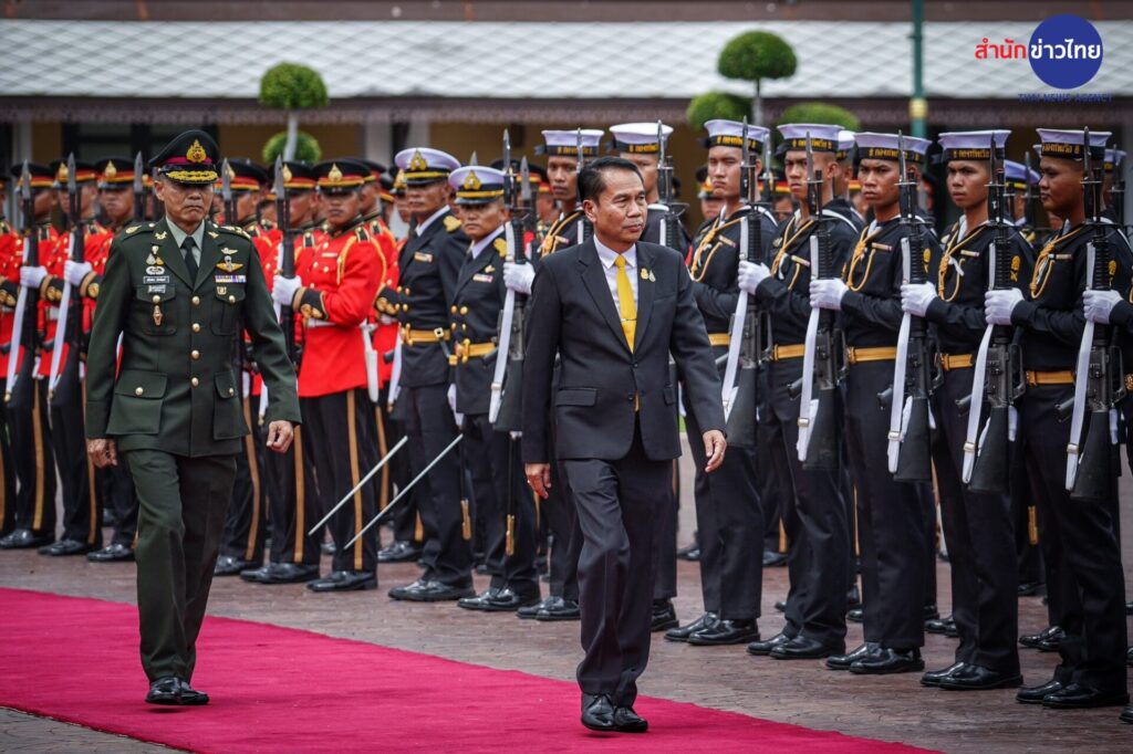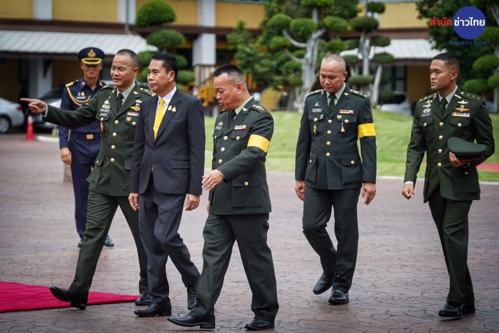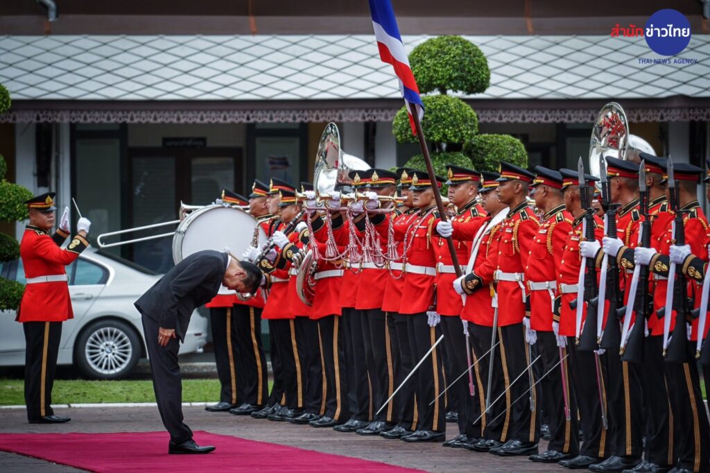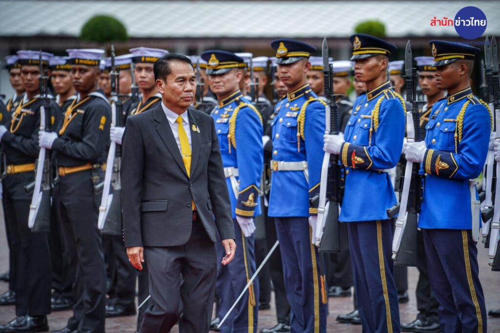 “สุทิน” ถือฤกษ์ดีเลข 13 มงคลชีวิต เข้ากลาโหม พลเรือนคนแรกที่ไม่ใช่นายกฯ รับการตรวจแถวกองเกียรติยศ ขณะที่เหล่าทัพร่วมต้อนรับ โดยมี พล.อ.สนิธชนก สังขจันทร์ ปลัดกระทรวงกลาโหม พร้อมด้วย พล.อ.ทรงวิทย์ หนุนภักดี ว่าที่ ผบ.ทหารสูงสุด, พล.ร.อ.เชิงชาย ชมเชิงแพทย์ ผู้บัญชาการทหารเรือคนปัจจุบัน, พล.อ.อ.พันธ์ภักดี พัฒนกุล ว่าที่ผู้บัญชาการทหารอากาศ พร้อมด้วยฝ่ายข้าราชการการเมือง พล.อ.สมศักดิ์ รุ่งสิตา ว่าที่ที่ปรึกษา รมว.กลาโหม พล.อ.ณัฐพล นาคพาณิชย์ ว่าที่เลขานุการ รมว.กลาโหม ตลอดจนคณะทำงาน