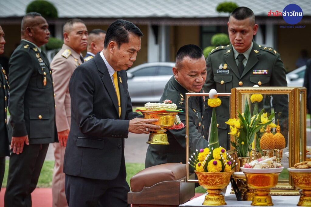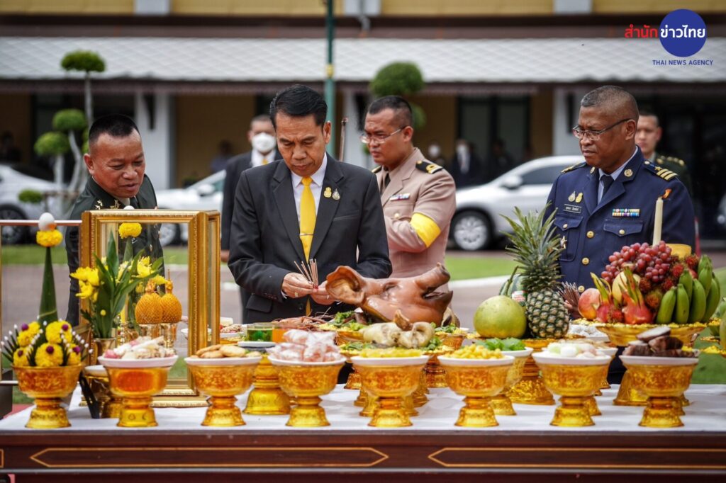 จากนั้นได้ถือฤกษ์ วันที่ 13 เวลา 13.13 น. เข้ากระทรวงกลาโหม ได้สักการะเจ้าพ่อหอกลอง ซึ่งเป็นสิ่งศักดิ์สิทธิ์ประจำกระทรวงกลาโหม ก่อนที่จะเข้าพิธีตรวจแถวกองทหารเกียรติยศผสม 3 เหล่าทัพ ณ ลานอเนกประสงค์ภายในศาลาว่าการกระทรวงกลาโหม และเป็นพลเรือนคนแรกไม่ได้เป็นนายกฯแต่ได้รับการตรวจแถวกองเกียรติยศก่อนประชุมมอบนโนบายการทำงานให้หน่วยขึ้นตรงกระทรวงกลาโหม และเหล่าทัพ