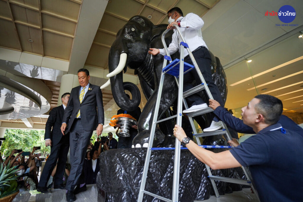 ทันทีที่นายเศรษฐา เดินทางมาถึง ได้สักการะศาลพระพรหม ศาลพระภูมิ พระคลังในพระคลังมหาสมบัติ พระบรมรูปพระบาทสมเด็จพระจุลจอมเกล้าเจ้าอยู่หัว รัชกาลที่ 5 พระพุทธรูปประจำกระทรวงฯ โดยเฉพาะช้างคู่ ที่เป็นสิ่งศักสิทธิ์สำคัญประจำกระทรวงการคลัง ถือเป็นสัญลักษณ์ของความมั่นคงทางการเงินของประเทศ ซึ่งรัฐมนตรีว่าการกระทรวงการคลังทุกคนที่เข้ารับตำแหน่งจะต้องสักการะช้างคู่ เพื่อความเป็นสิริมงคล ก่อนเริ่มต้นทำงาน