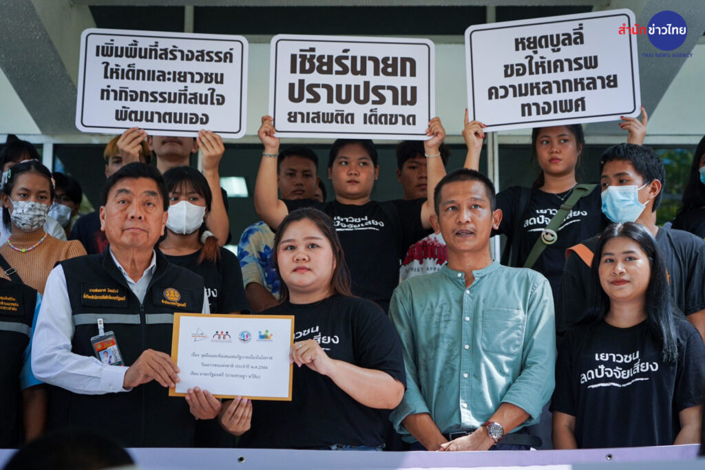 20 ก.ย.2566 เครือช่ายเยาวชนลดปัจจัยเสี่ยง พร้อมด้วยเครือข่ายพัฒนาคุณภาพชีวิต เครือข่ายสร้างเสริมสุขภาพเยาวชน และมูลนิธิเด็กเยาวชนและครอบครัว กว่า 50 คน เข้ายื่นหนังสือถึงนายเศรษฐา ทวีสิน นายกรัฐมนตรี เพื่อแสดงจุดยืนและข้อเสนอต่อรัฐบาลเนื่องในโอกาสวันเยาวชนแห่งชาติ ประจำปี พ.ศ.2566