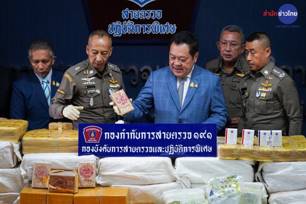 28 ก.ย.2566 เมื่อเวลา 14.30 น. ที่ กองบังคับการสายตรวจและปฏิบัติการพิเศษ (191) วิภาวดีรังสิต พ.ต.อ.ทวี สอดส่อง รัฐมนตรีว่าการกระทรวงยุติธรรม พล.ต.อ.ต่อศักดิ์ สุขวิมล รองผบ.ตร พร้อมด้วยชุดจับกุม แถลงข่าวกรณีนำกำลัง กก.สายตรวจ บก.สปพ. ตรวจยึดยาบ้า 15 ล้านเม็ด เฮโรอีน 443 แท่ง ไอซ์ 420 โล, แฮปปี้ซอเทอร์ 3 กระสอบ, ไฟว์ไฟว์ หรืออิริมินไฟว์ 4 กระสอบ, รถยนต์ 9 คัน และโทรศัพท์มือถืออีก 9 เครื่อง เป็นของกลางที่ชุดปฏิบัติการพิเศษ (191) อายัดได้ที่บ้านพัก ในซอยลำพยา-บอสโก ตำบลโพรงมะเดื่อ อำเภอเมือง จังหวัดนครปฐม เมื่อช่วงค่ำของวานนี้ (27 ก.ย.66)