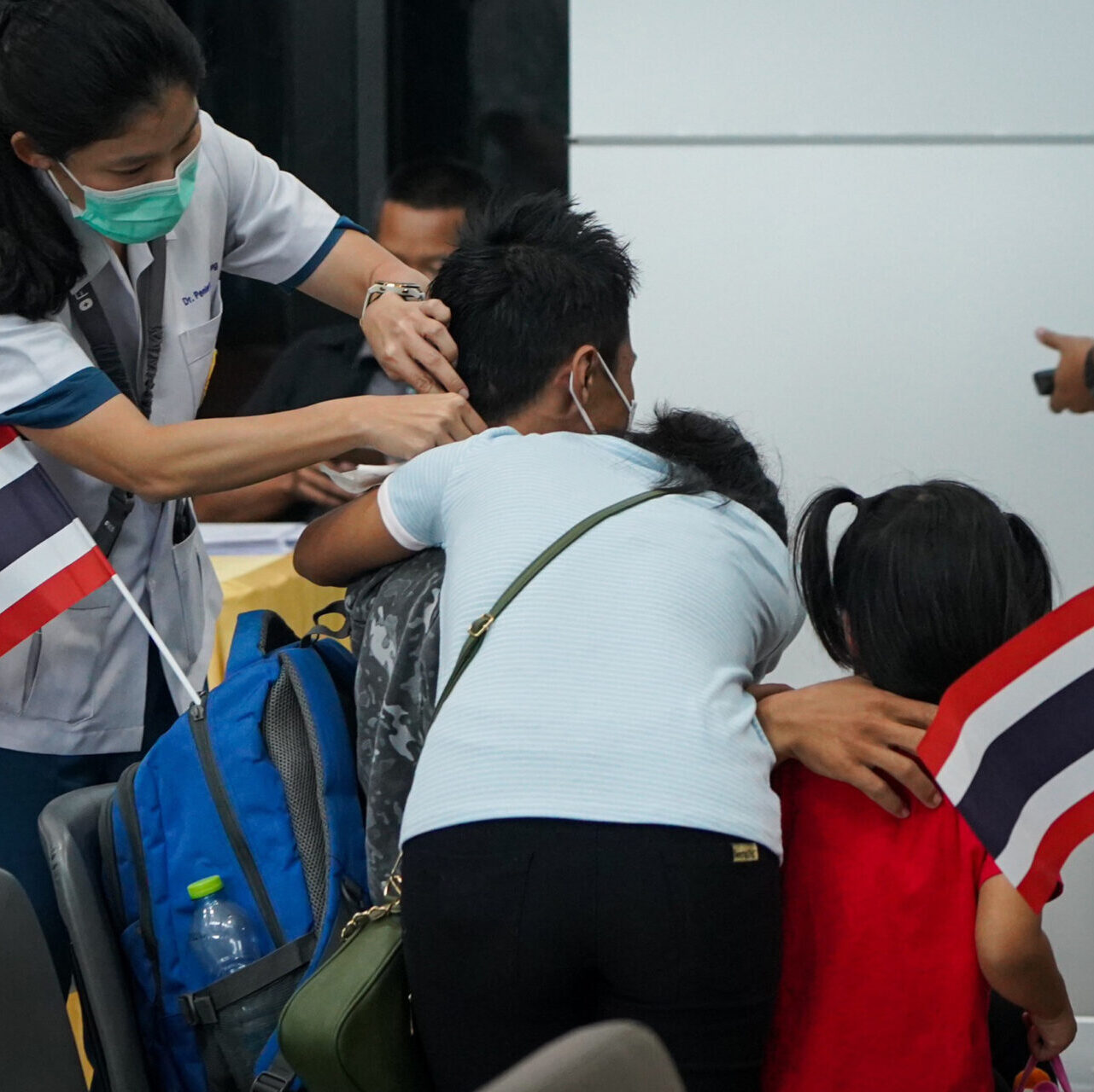 19 ต.ค.66 นายวิทวัส กุลวงศ์ แรงงานชาวอุดรวัย 34 ปี ซึ่งรอดชีวิตจากเหตุรุนแรง จากการถูกกลุ่มฮามาสบุกเข้ามาทำร้ายจนได้รับบาดเจ็บ และได้ต่อสู้จนหมดสติไป ได้เดินทางกลับมากับเที่ยวบินนี้ด้วย ซึ่งในช่วงเวลาที่รอทำเอกสารต่างๆ ภรรยาและลูกต่างเฝ้ารอจะได้เข้าไปโอบกอดด้วยความดีใจ
