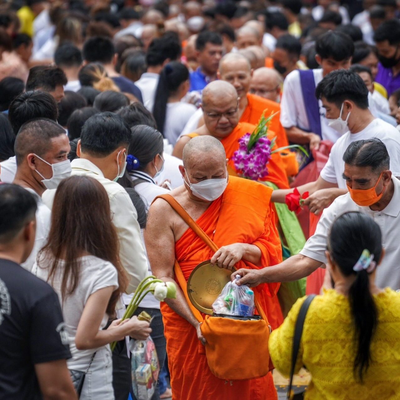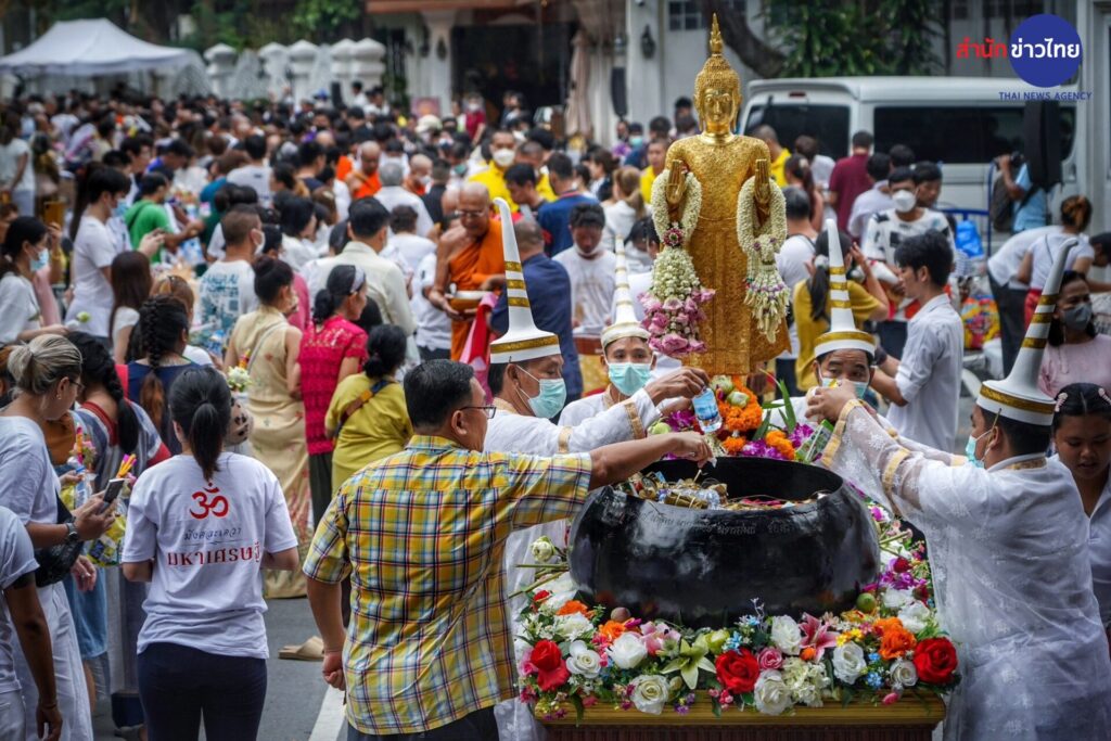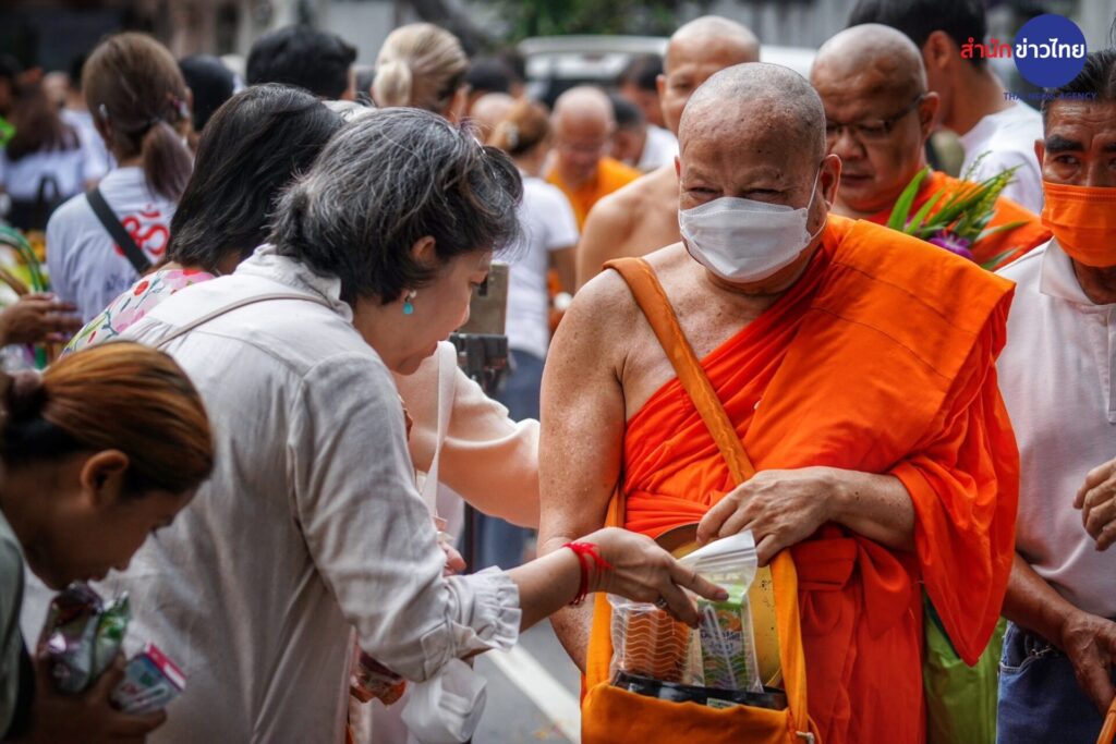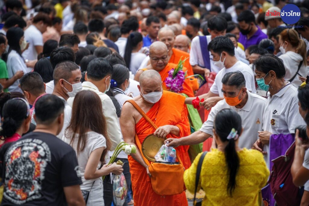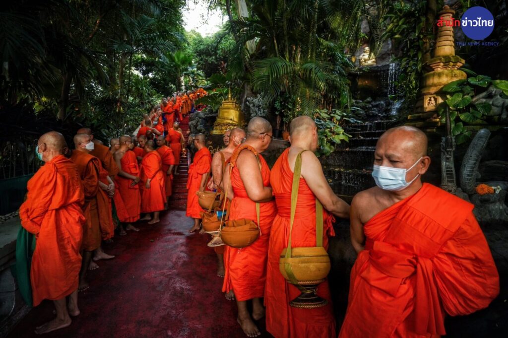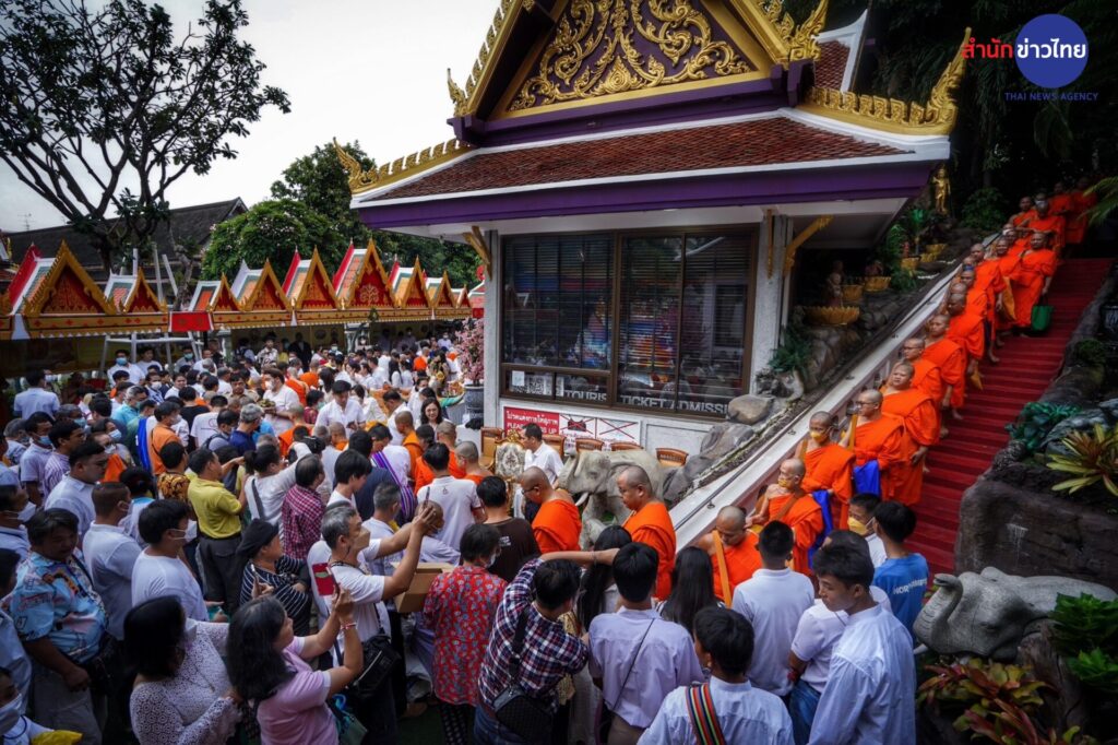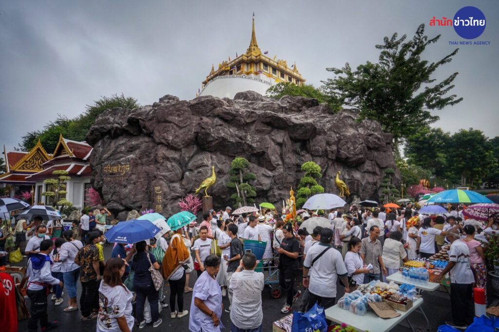 พุทธศาสนิกชน ร่วมตักบาตรเทโวโรหณะเนื่องในวันออกพรรษาที่วัดสระเกศราชวรมหาวิหาร (ภูเขาทอง) โดยมี พระธรรมโพธิมงคล เจ้าอาวาสวัดสระเกศฯ เดินนำพระสงฆ์ลงมาจากบรมบรรพตภูเขาทองเพื่อรับบาตร รวม 109 รูป