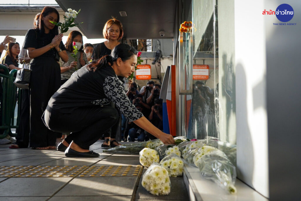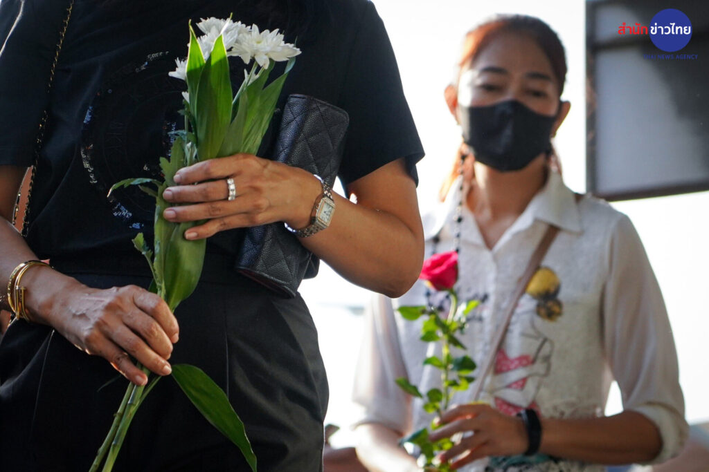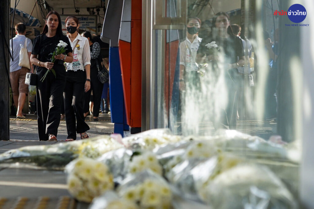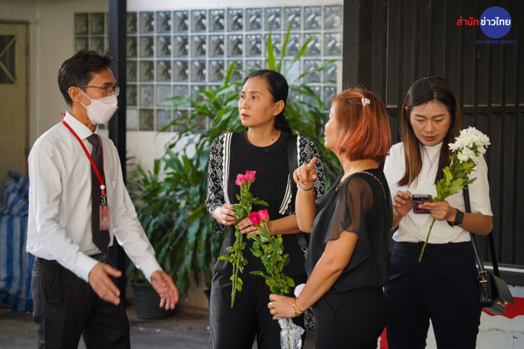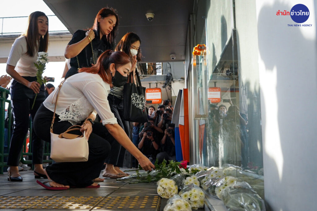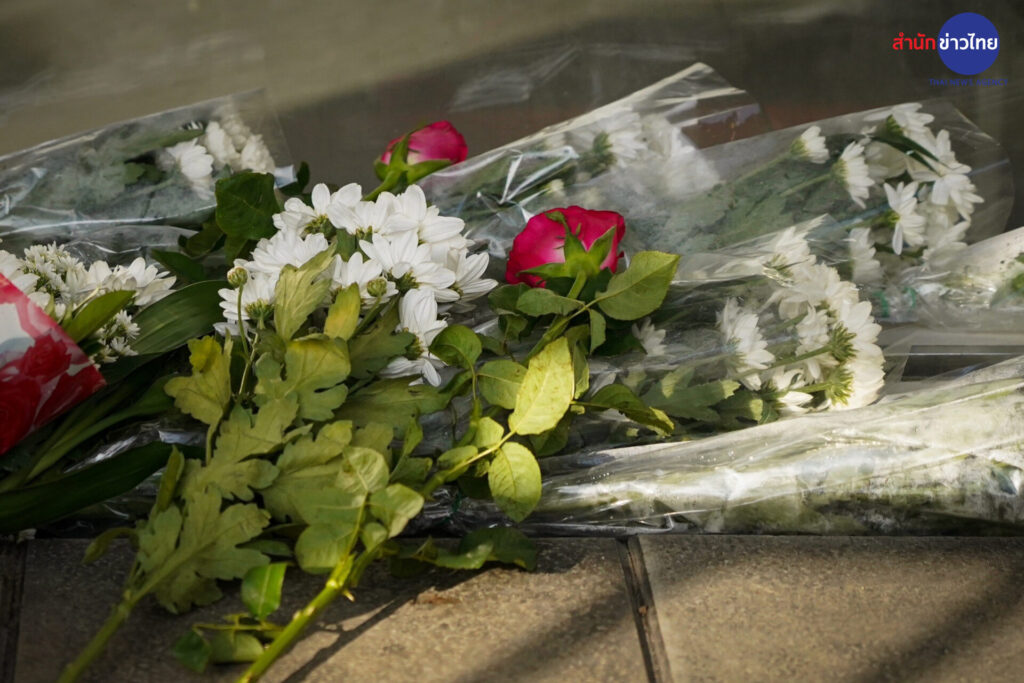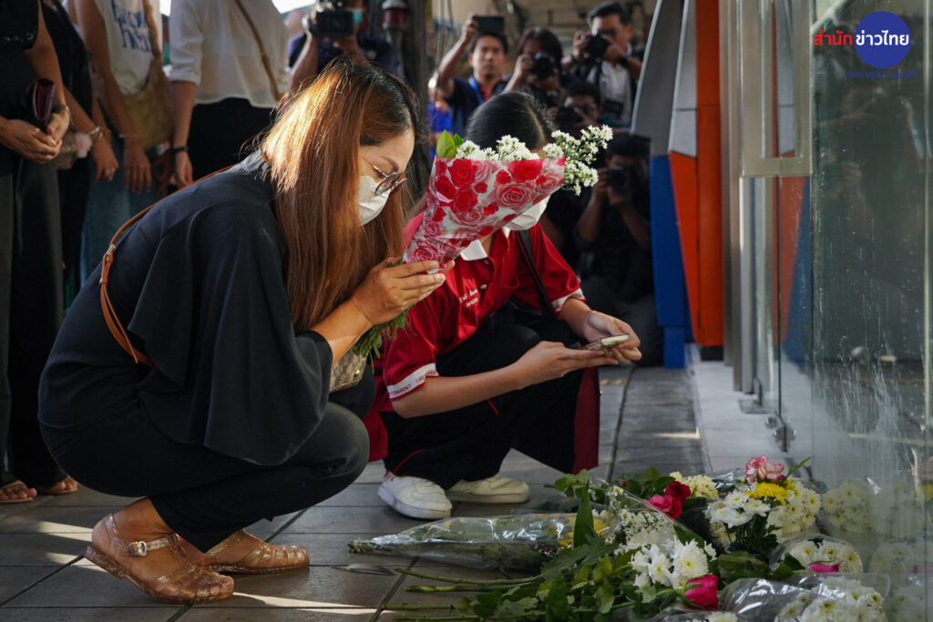 13 พ.ย.2566 กลุ่มผู้ปกครองและนักเรียน นำดอกไม้มาวางไว้อาลัยต่อการจากไปของ “ครูเจี๊ยบ” เหยื่อลูกหลงเหตุวัยรุ่นไล่ยิงกัน เมื่อวันที่ 11 พ.ย.ที่ผ่านมา