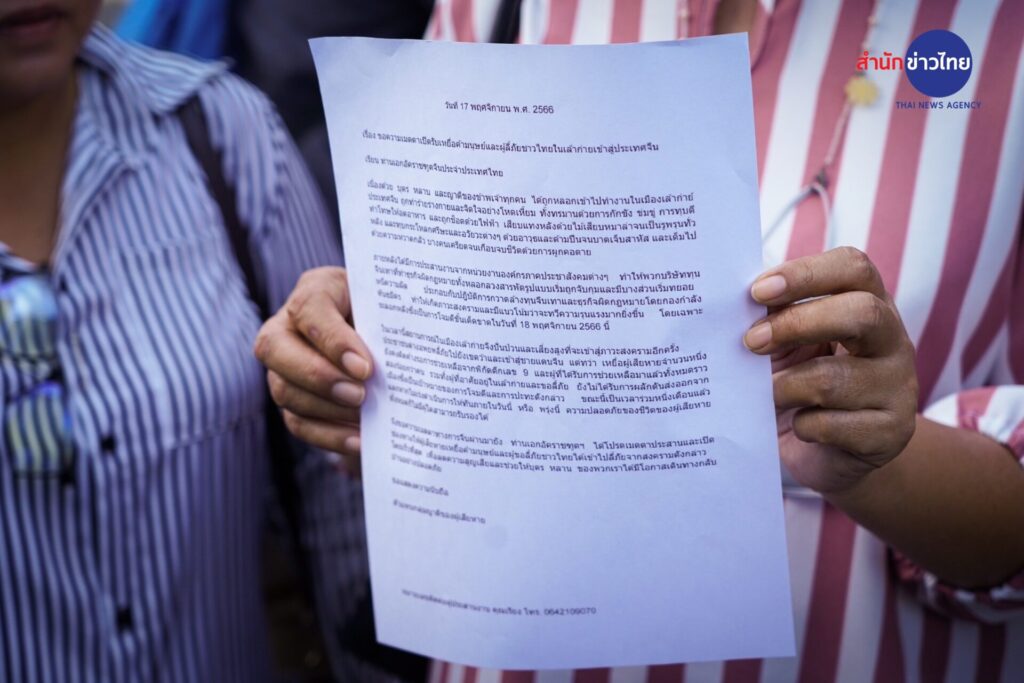 เมื่อเวลา 10.00น. ตัวแทนครอบครัวของคนไทยที่ติดอยู่ในสงครามเมืองเล่าก์ก่าย ประเทศเมียนมา จำนวน 8 คน มายื่นหนังสือ ขอให้จีนเปิดรับเหยื่อการค้ามนุษยย์และผู้ลี้ภัยไทยในเมืองเล้าก์ก่ายเข้าสู่ประเทศจีน ถึงเอกอัครราชทูตจีน ประจําประเทศไทย เพื่อให้การช่วยเหลือ และอนุญาตให้เดินทางผ่านทางชายแดนประเทศจีน-เมียนมา ในการลี้ภัยจากสงครามโดยเร็วที่สุด เพื่อลดการสูญเสียและช่วยให้คนไทยได้มีโอกาสเดินทางกลับบ้าน