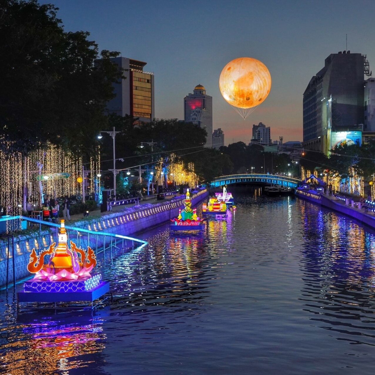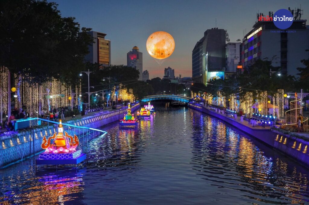 สำหรับไฮไลต์ของงาน นอกจากการแสดงแสง เสียง “Lighting illumination Show” วันเสาร์ที่ 25 พ.ย.นี้ จะมีขบวนแห่ประเพณีลอยกระทง โดยมี “แอนนา เสืองามเอี่ยม” Miss Universe Thailand 2022 แต่งกายชุดนางนพมาศนำขบวน นอกจากนี้ยังมีการแสดงทางวัฒนธรรม กิจกรรมสาธิตอาหารชาววังและกระทงเอกลักษณ์ 5 พื้นที่กิจกรรม รวมทั้งตลาดย้อนยุครัตนโกสินทร์ จำหน่ายอาหารไทย