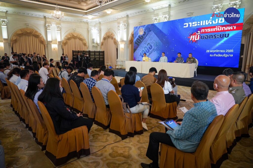 นายเศรษฐา ทวีสิน นายกรัฐมนตรีและรัฐมนตรีว่าการกระทรวงการคลัง พร้อมด้วย นาย อนุทิน ชาญวีรกูล รองนายกรัฐมนตรีและรัฐมนตรีว่าการกระทรวงมหาดไทย พล.ต.อ. ธนา ชูวงศ์ รองผู้บัญชาการตำรวจแห่งชาติ และ นาย กฤษฎา จีนะวิจารณะ รัฐมนตรีช่วยว่าการกระทรวงการคลัง แถลงข่าวการแก้ปัญหา หนี้นอกระบบ เป็นวาระแห่งชาติ กล่าวว่า รัฐบาลมองว่าปัญหาหนี้นอกระบบ เป็นปัญหาของประเทศอย่างยาวนาน โดยรัฐบาลจะเอาจริงกับปัญหา ยกให้เป็นวาระแห่งชาติ เพื่อฟื้นฟูสภาพความเป็นอยู่และสร้างความมั่นคงให้ประชาชน โดยรัฐบาลได้รับความร่วมมือจากหลายฝ่ายทั้งฝ่ายปกครองและฝ่ายตำรวจ