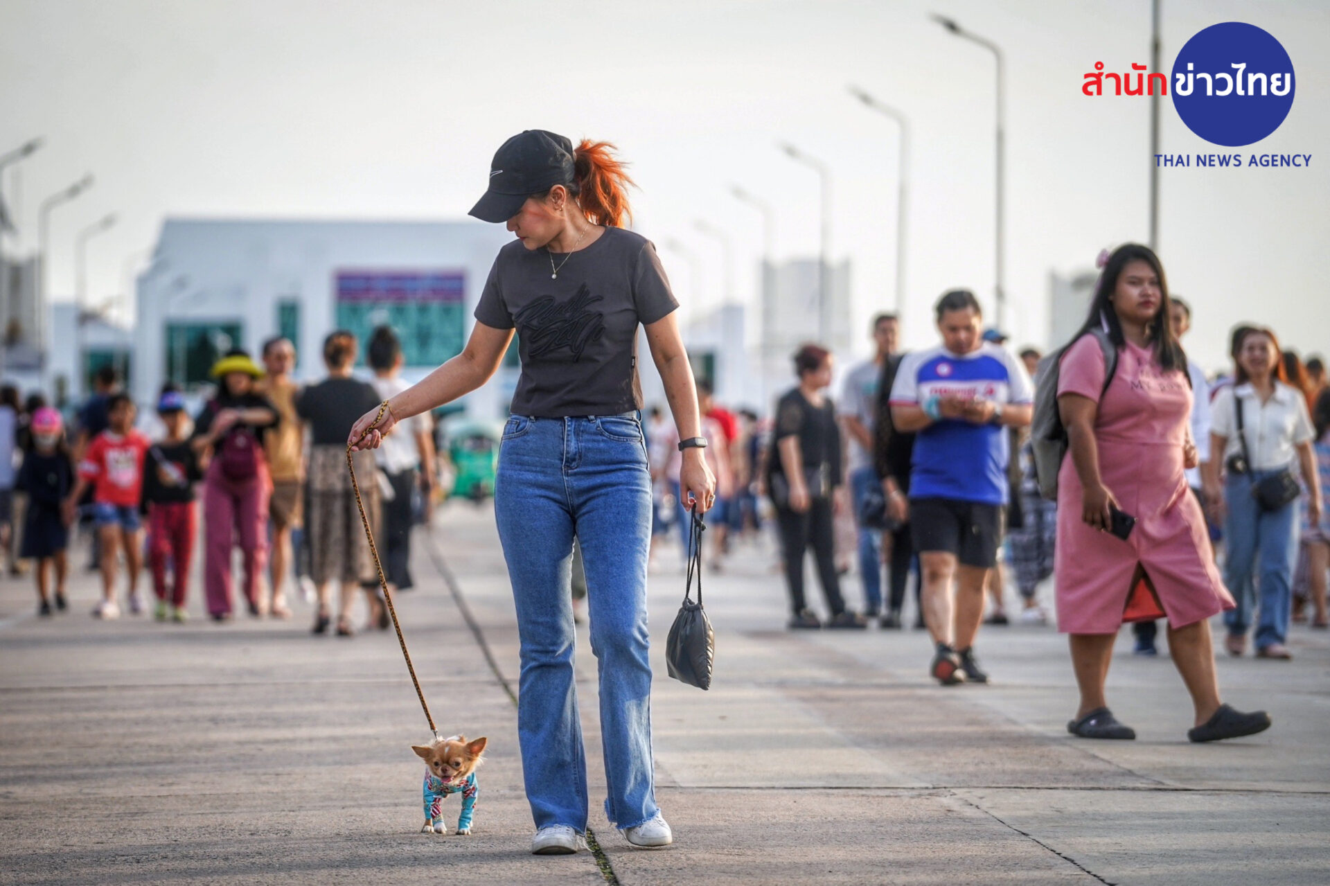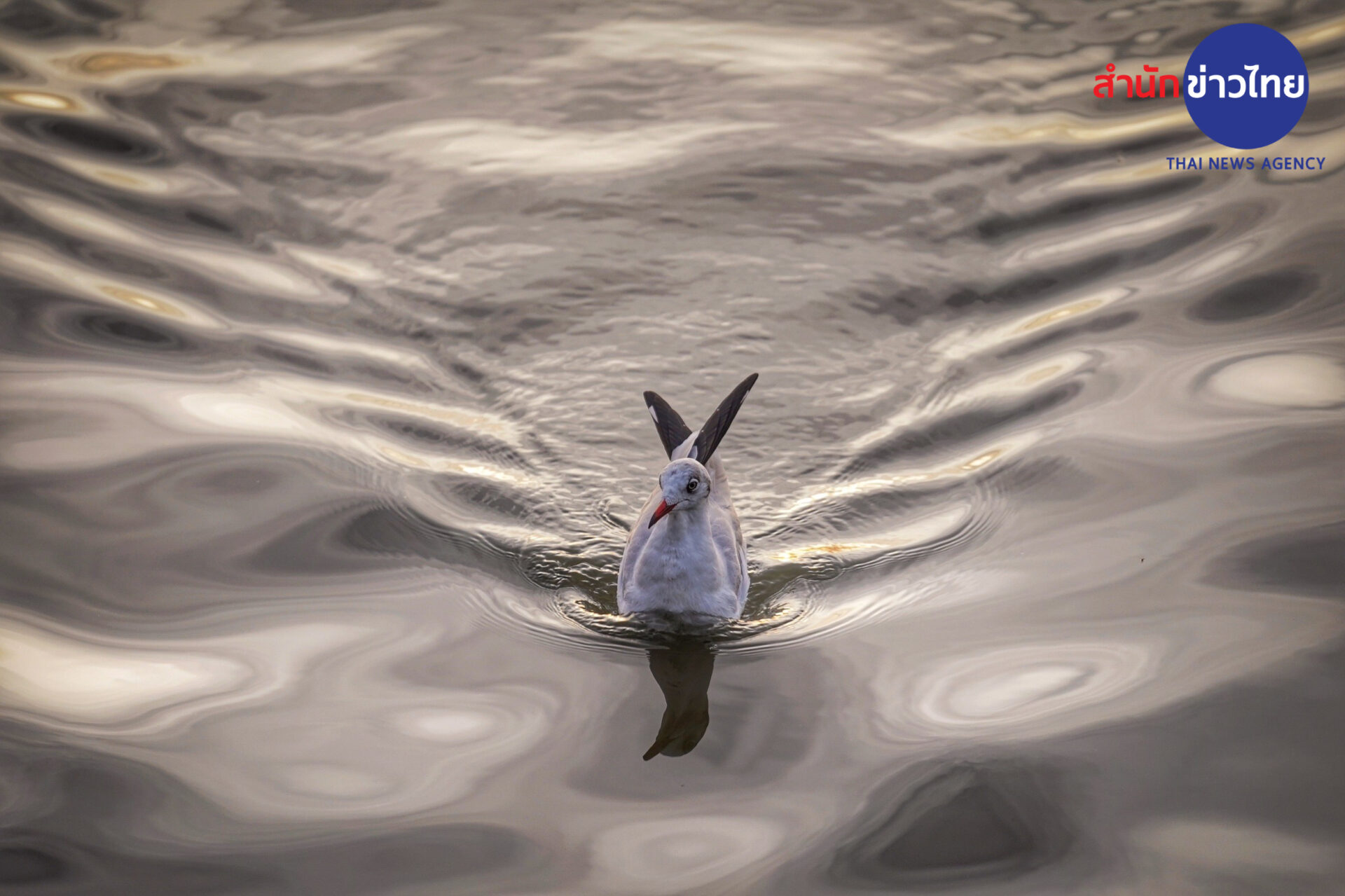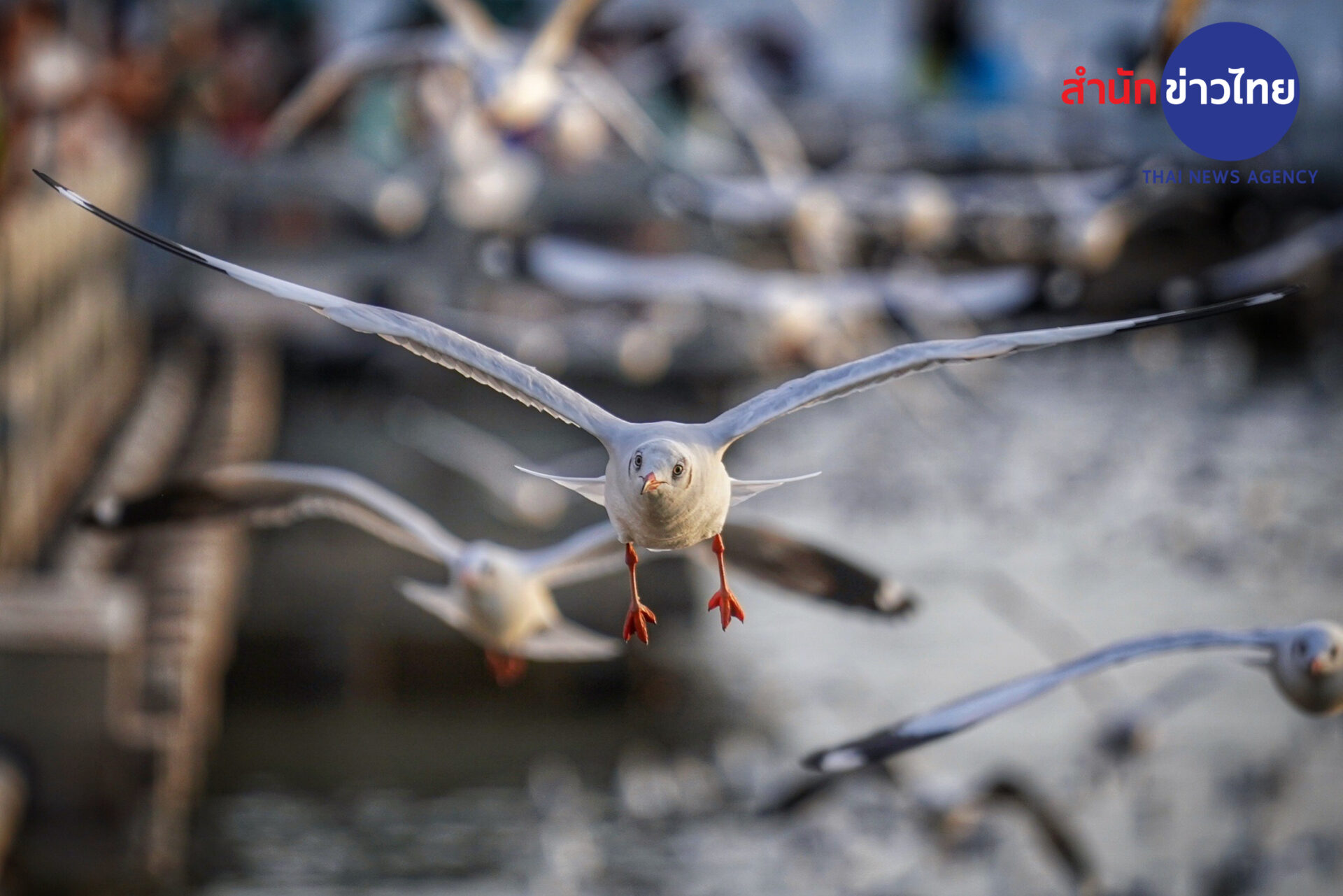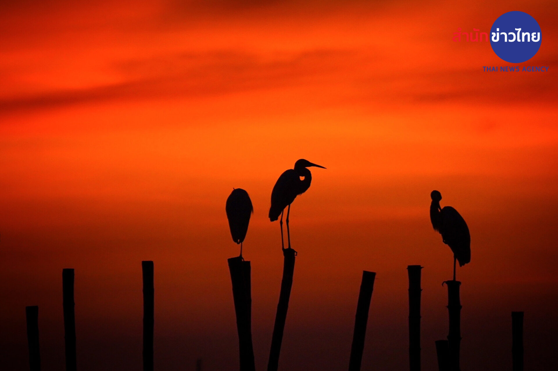 ประชาชนใช้เวลาพักผ่อนในช่วงวันหยุด ดูนกนางนวล ชมอาทิตย์ตกดิน ที่บางปู