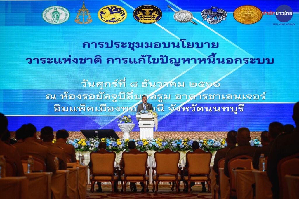นายเศรษฐา ทวีสิน นายกรัฐมนตรีและรัฐมนตรีว่าการกระทรวงการคลัง เดินทางเป็นประธานการประชุมมอบนโยบาย “วาระแห่งชาติ” การแก้ไขปัญหาหนี้นอกระบบ โดยทันทีที่มาถึงนายกรัฐมนตรี ได้เยี่ยมชม นิทรรศการของหน่วยงานที่เกี่ยวข้องกับนโยบายการแก้ไขปัญหาหนี้นอกระบบ โดยมีนายชาดา ไทยเศรษฐ์ รัฐมนตรีช่วยว่าการกระทรวงมหาดไทย และพลตำรวจเอกธนา ชูวงษ์ รองผู้บัญชาการตำรวจแห่งชาติ ให้การต้อนรับ ภายในงานวันนี้ มีผู้เข้าร่วมประชุมประกอบด้วยผู้บริหารกระทรวงมหาดไทย ผู้บริหารสำนักงานตำรวจแห่งชาติ ผู้ว่าราชการจังหวัดทุกจังหวัด ปลัด และนายอำเภอ ผู้อำนวยการเขต ผู้บังคับการตำรวจภูธรจังหวัดทุกจังหวัด และนครบาล รวมถึงหน่วยงานที่เกี่ยวข้อง ประกอบด้วยสำนักงานอัยการสูงสุด กรมสอบสวนคดีพิเศษ สำนักงานเศรษฐกิจการคลัง สำนักงานคณะกรรมการคุ้มครองผู้บริโภค ธนาคารแห่งประเทศไทยและผู้บริหารธนาคารกรุงไทย ธนาคารออมสิน ธนาคารเพื่อการเกษตรและสหกรณ์