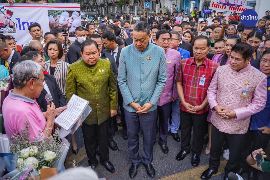 ด้าน นายเศรษฐา กล่าวขอบคุณเกษตรกรผู้เลี้ยงหมู ที่เดินทางมาให้กำลังใจ พร้อมบอกเป็นหน้าที่ของรัฐบาลอยู่แล้ว ที่จะต้องช่วยแก้ปัญหาที่หมักหมมมาหลายปี ในขณะที่รัฐบาลนี้ ทุกคนทำงานอย่างเต็มที่จริงจังและขอยืนยันว่าจะยังทำงานแก้ปัญหากันต่อไป แต่ขอให้ผู้เลี้ยงสุกรมีความอดทน ยืนยันจะไม่มีการปกปิดและเอื้อประโยชน์ให้กับใครทั้งสิ้น รัฐบาลเข้าใจถึงความเดือดร้อนของประชาชน