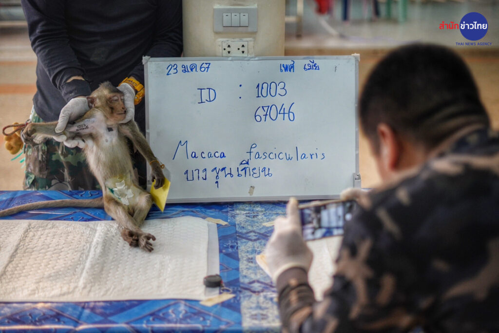ทั้งนี้ลิงที่ถูกทำหมันเรียบร้อย จะมีรอยสักสีดำ และมีหมายเลขกำกับไว้ที่ตัวของลิง ทำประวัติขึ้นทะเบียน ก่อนนำไปปล่อยตามถิ่นอาศัยตามธรรมชาติ ของลิงเหมือนเดิม
