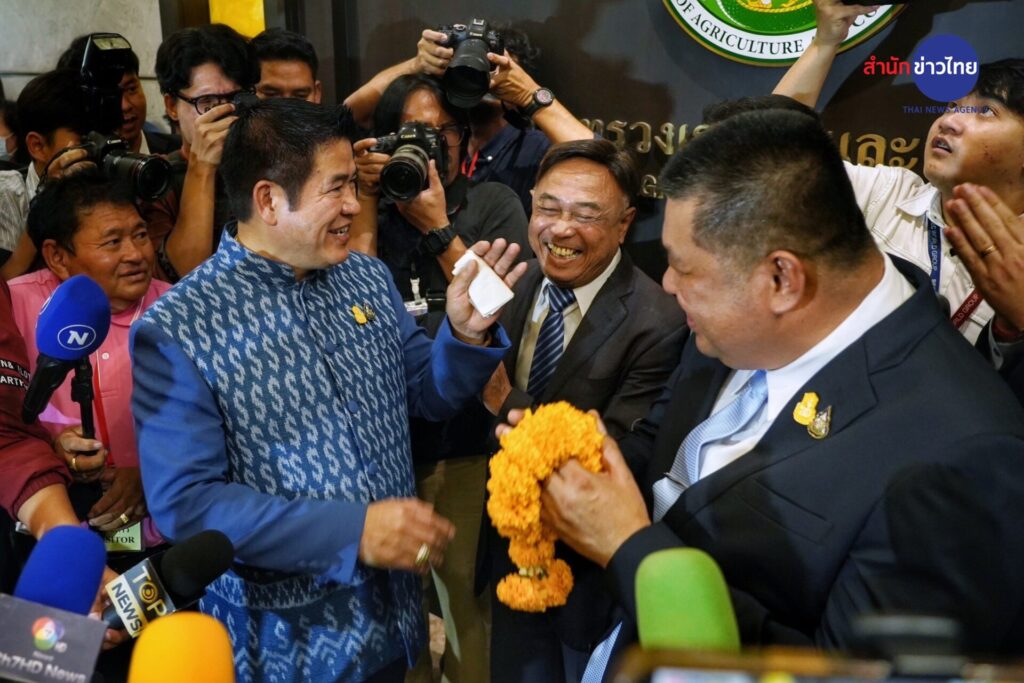 ในระหว่างการแถลงข่าว ร้อยเอกธรรมนัส พรหมเผ่า รัฐมนตรีว่าการกระทรวงเกษตรและสหกรณ์ เข้ามาให้กำลังใจอธิบดีกรมการข้าว โดยระบุว่า พูดคุยกันอยู่เป็นประจำ ทั้งอธิบดีและคุณนายติ๋ม ไม่ต้องพูดอะไรมาก