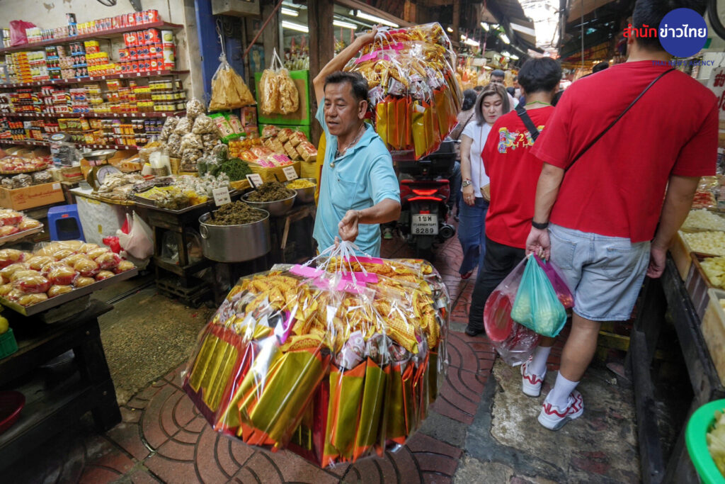 8 ก.พ.2567 ประชาชนชาวไทยเชื้อสายจีนออกมาจับจ่าย ซื้อเป็ด หมู ไก่ พร้อมอาหารมงคลคาวหวาน เครื่องเซ่นไหว้ ผลไม้ ช่วงวันจ่ายเทศกาลตรุษจีน 2567 โดยปีนี้ค่อนข้างคึกคักตั้งแต่ช่วงเช้า มีชาวไทยเชื้อสายจีนออกมาจับจ่ายซื้อเครื่องเซ่นไหว้กันอย่างต่อเนื่อง