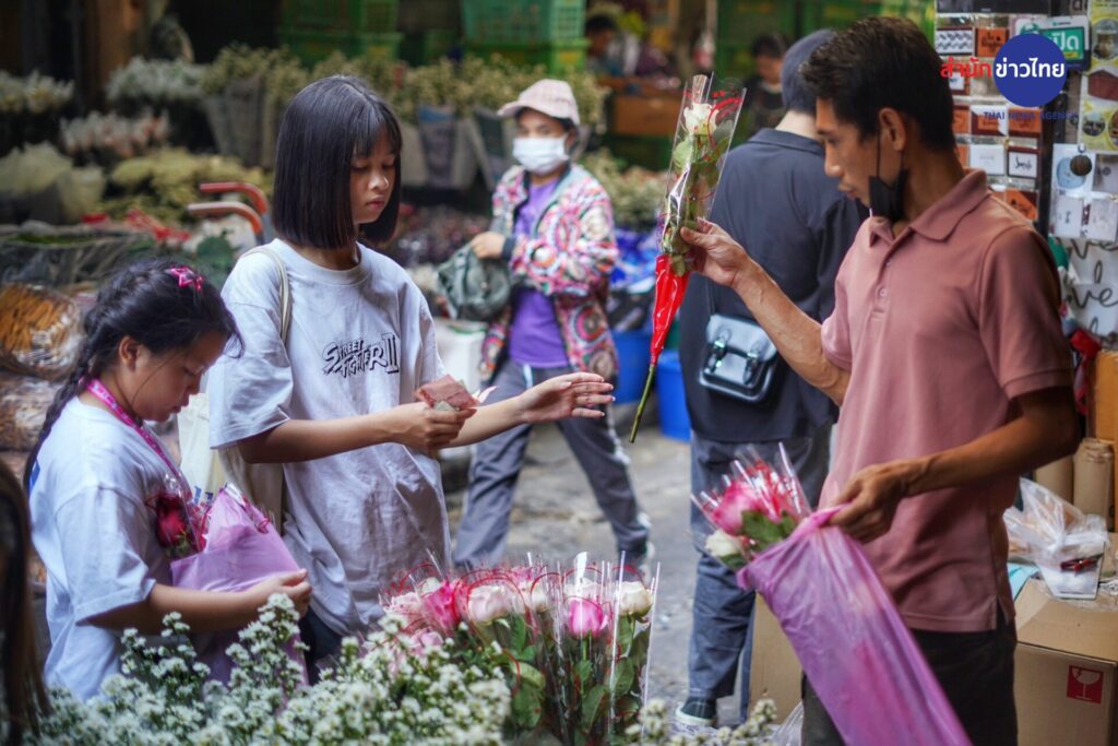 13 ก.พ.2567 บรรยากาศที่ปากคลองตลาด เริ่มคึกคัก มีประชาชนมาเลือกหาซื้อดอกไม้ ในช่วงเทศกาลวันวาเลนไทน์ ซึ่งมีทั้งดอกไม้ไทย และนำเข้าจากต่างประเทศ มีทั้งขายแบบเป็นมัดและจัดขายแบบเป็นช่อสวยงาม
