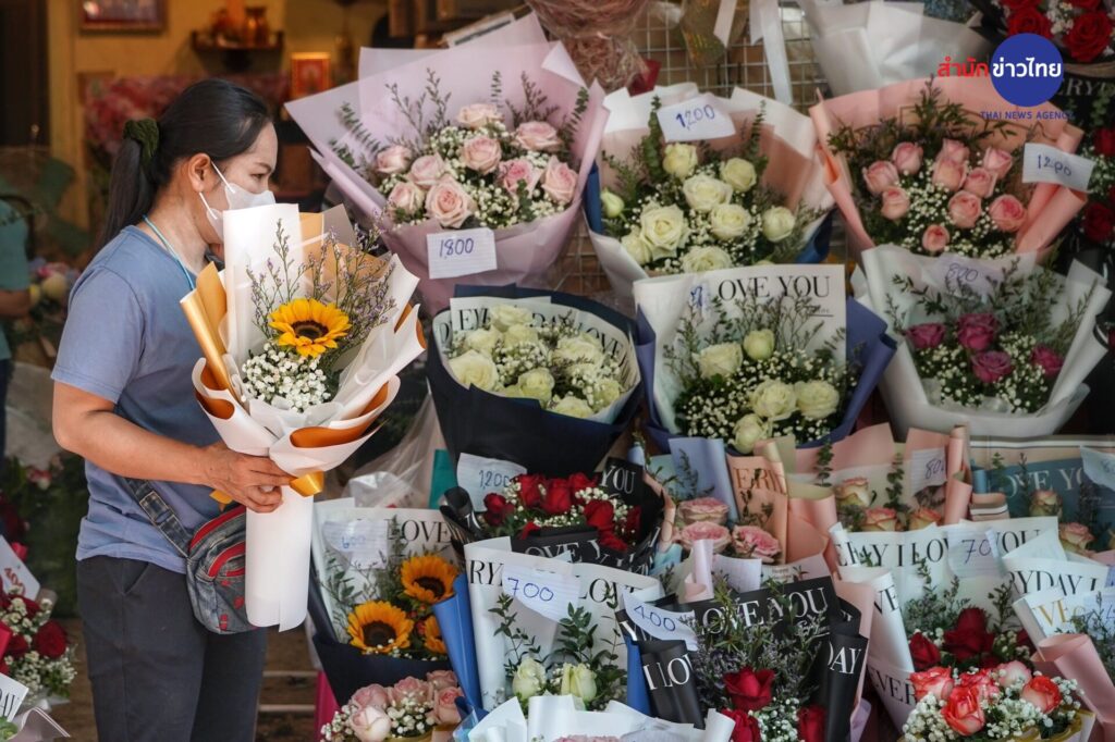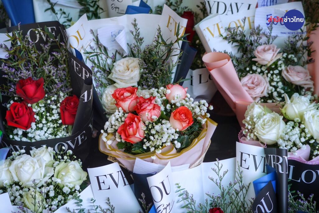 ราคากุหลาบปีนี้ มีราคาไม่สูงมาก เมื่อเทียบกับช่วงโควิดระบาด เช่น กุหลาบสีแดงสายพันธุ์จากต่างประเทศ แต่ปลูกในไทยดอกใหญ่จัดขายเป็นมัด มัดละ 25 ดอก ราคา 250 บาท ตกดอกละ 10 บาท ส่วนกุหลาบไทยดอกเล็กขายเป็นมัด มัดละ 50 ดอก ขายอยู่ที่ 300 บาท ส่วนที่จัดเป็นช่อสวยงาม ราคาเริ่มต้นอยู่ที่ประมาณ 200-500 บาท บางร้านนอกจากจัดช่อดอกไม้สด ก็ยังจัดเป็นแบบช่อตุ๊กตาหมีน่ารักๆ ในราคาไม่เกิน 200 บาท