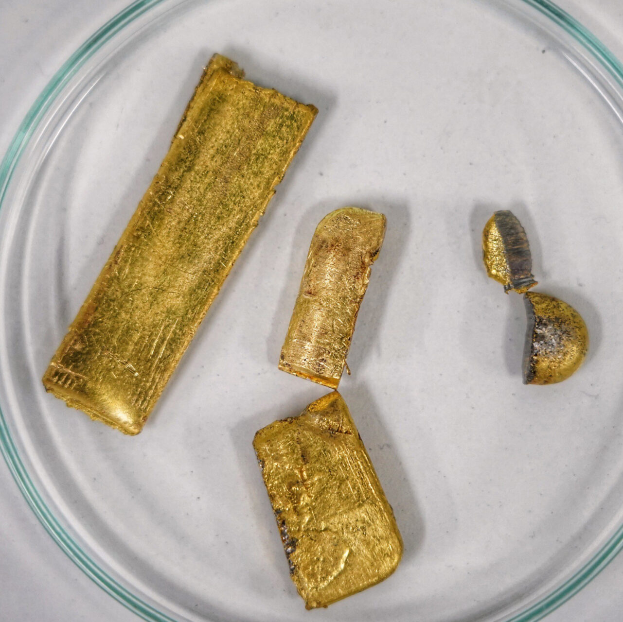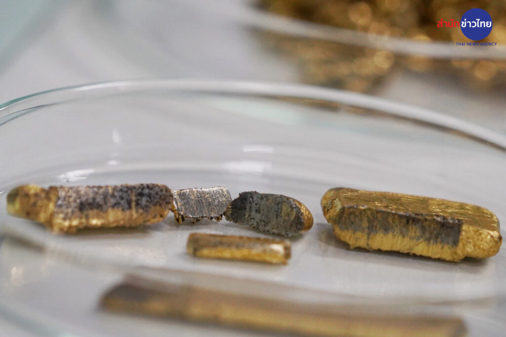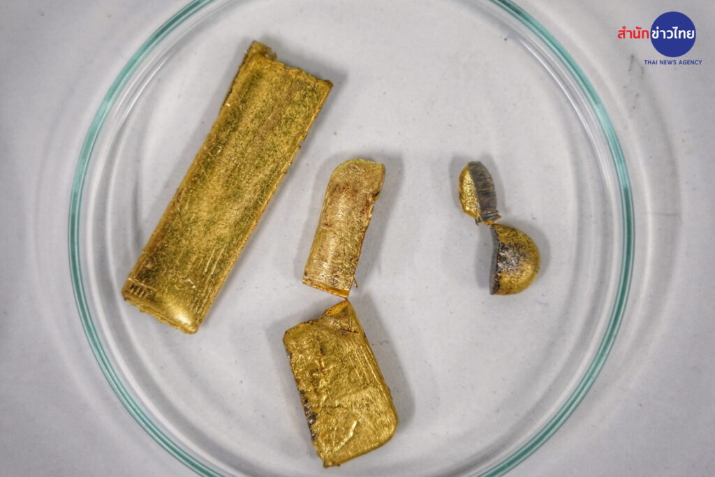 จากผลการตรวจพิสูจน์ของกลุ่มงานตรวจทางเคมี ฟิสิกส์ กองพิสูจน์หลักฐานกลางพบว่า โลหะที่ใช้ผสมกับโลหะทองคำ เป็นธาตุโลหะรีเนียม (Rhenium) และทังสเตน (Tungsten) ซึ่งไม่สามารถใช้เทคนิคพื้นฐาน เช่น หยดกรด เผาไหม้ หรือใช้เครื่องมือ X-ray ขนาดเล็กในการตรวจวิเคราะห์เจอได้ ทำให้จำเป็นต้องใช้เครื่องมือวิทยาศาสตร์ขั้นสูง ในการตรวจพิสูจน์