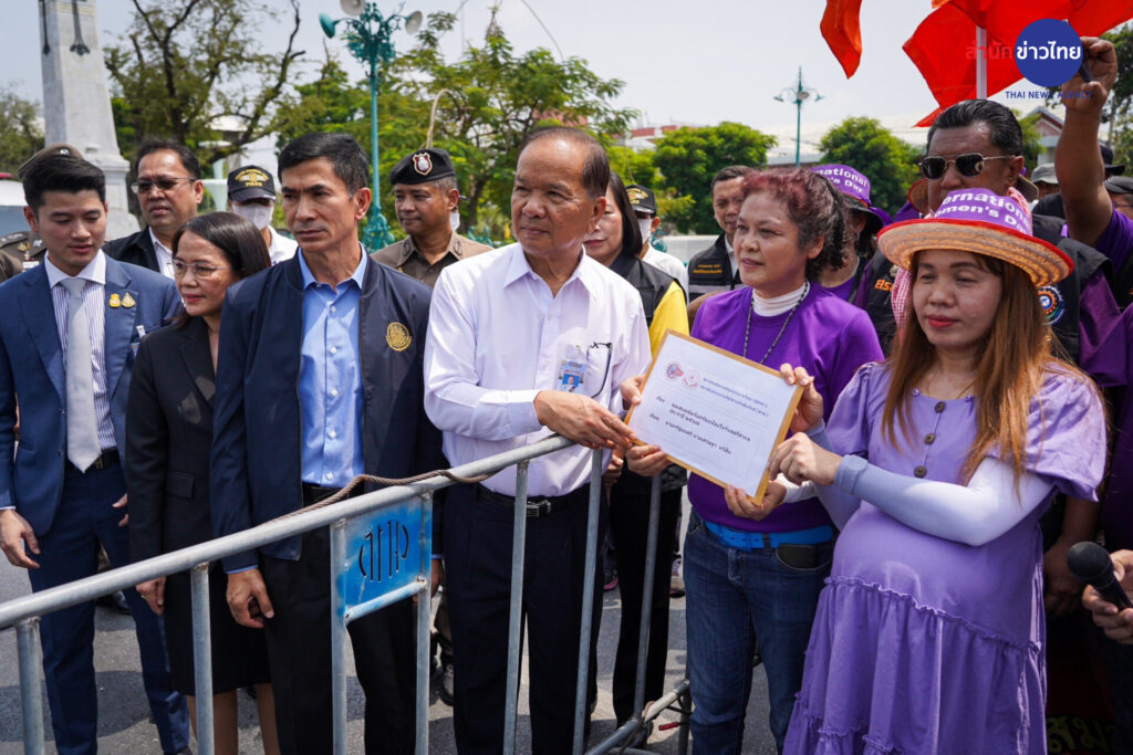 ทั้งนี้ ทางเจ้าหน้าที่ตำรวจได้ตรึงกำลังปิดสะพานมัฆวานฯ ทำให้ขบวนต้องหยุด และทำกิจกรรมพร้อมปราศรัย บริเวณสะพาน หลังจากนั้น ได้ยื่นหนังสือให้กับนายสมคิด เชื้อคง รองเลขาธิการนายกรัฐมนตรีฝ่ายการเมือง ซึ่งเป็นตัวแทนรัฐบาล มารับหนังสือ