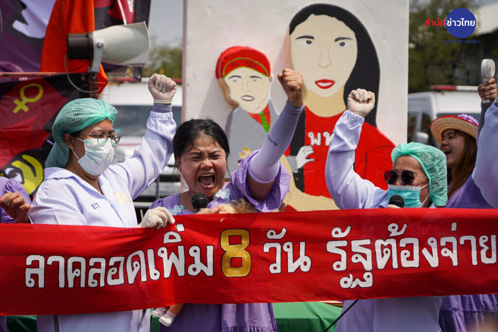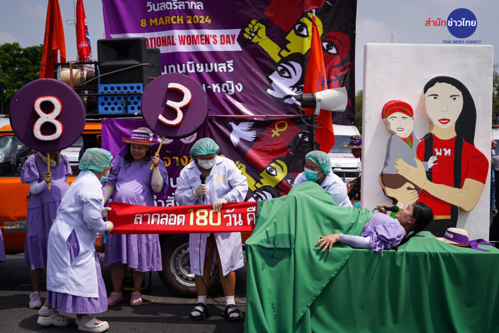 8 มี.ค.2567 สมาพันธ์แรงงานรัฐวิสาหกิจสัมพันธ์ (สรส.) ร่วมกับ องค์กรสมาชิก และพี่น้องผู้ใช้แรงงานทุกภาคส่วน ร่วมกันทำกิจกรรมรณรงค์เนื่องในวันสตรีสากล ประจำปี 2567 โดยได้รวมตัวกันที่ อนุสาวรีย์ประชาธิปไตย มีการถือป้ายข้อความต่างๆ มีการแต่งกายด้วยชุดคลุมท้อง เพื่อเรียกร้องเรื่องการลาคลอด 180 วัน จากนั้นได้เคลื่อนขบวนไปตามถนนราชดำเนินมุ่งหน้าไปยังประตู 5 ทำเนียบรัฐบาล เพื่อยื่นข้อเรียกร้อง เนื่องในวันสตรีสากล ประจำปี 2567