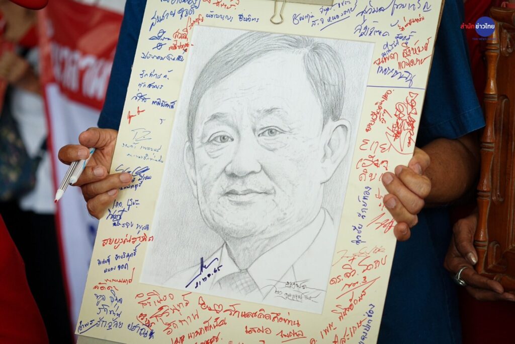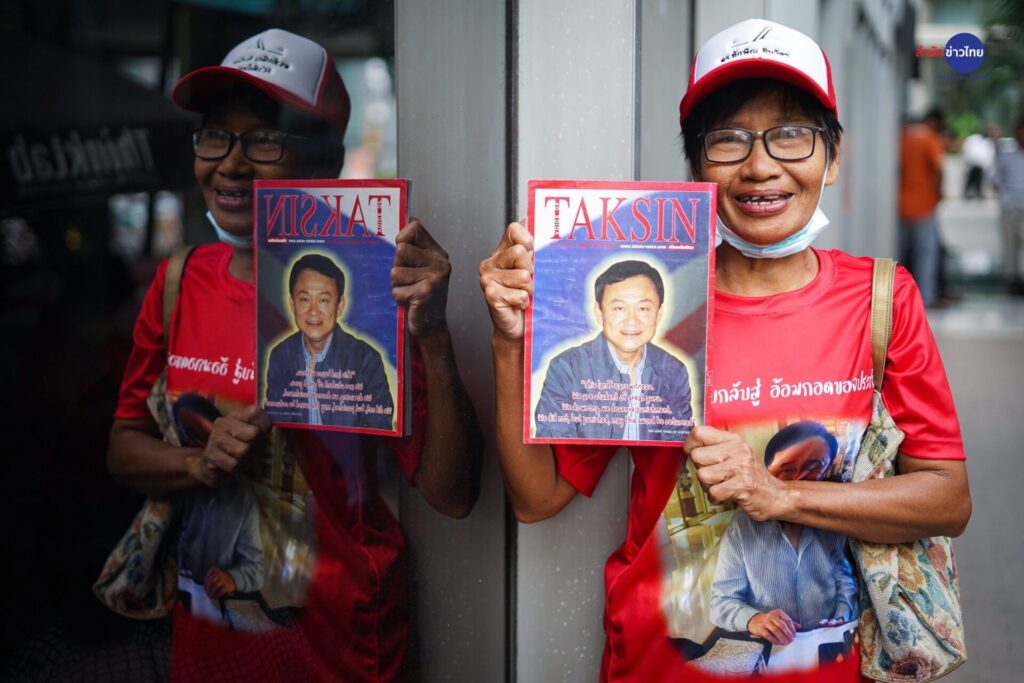 เมื่อเวลา 13.34 น. นายทักษิณ ชินวัตร อดีตนายกรัฐมนตรีและผู้ก่อตั้งพรรคไทยรักไทย เดินทางเข้ามายังที่ทำการพรรคเพื่อไทย โดยสวมเสื้อเชิ้ตลายทางขาวฟ้า สวมทับด้วยเสื้อสูทสีกรมท่า และสวมกางเกงยีนส์ โดยไม่ได้สวมเฝือกคอ