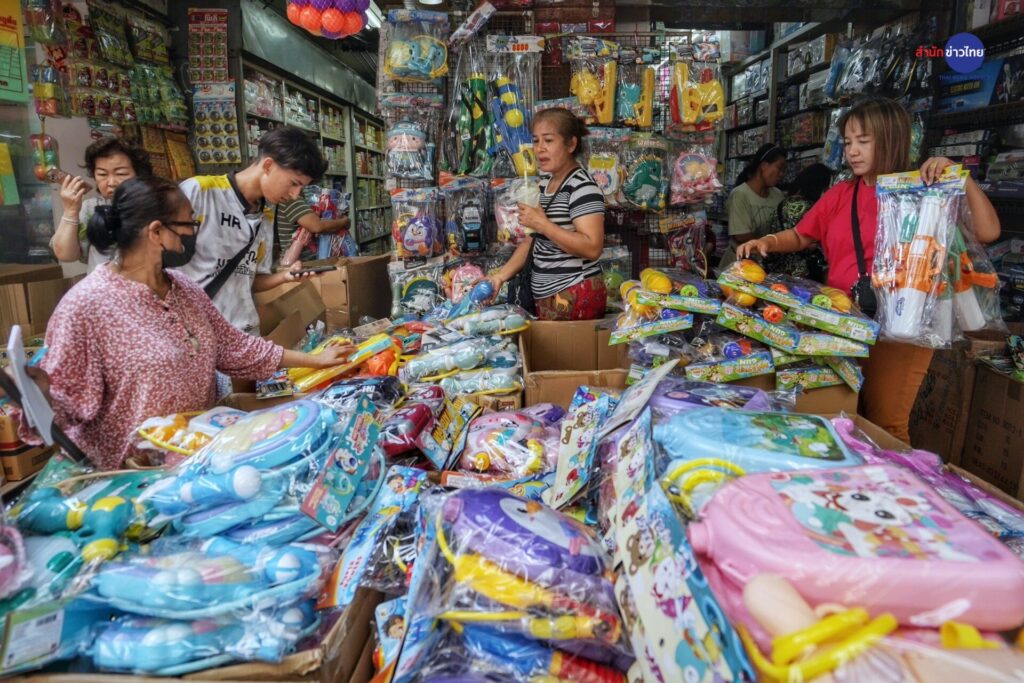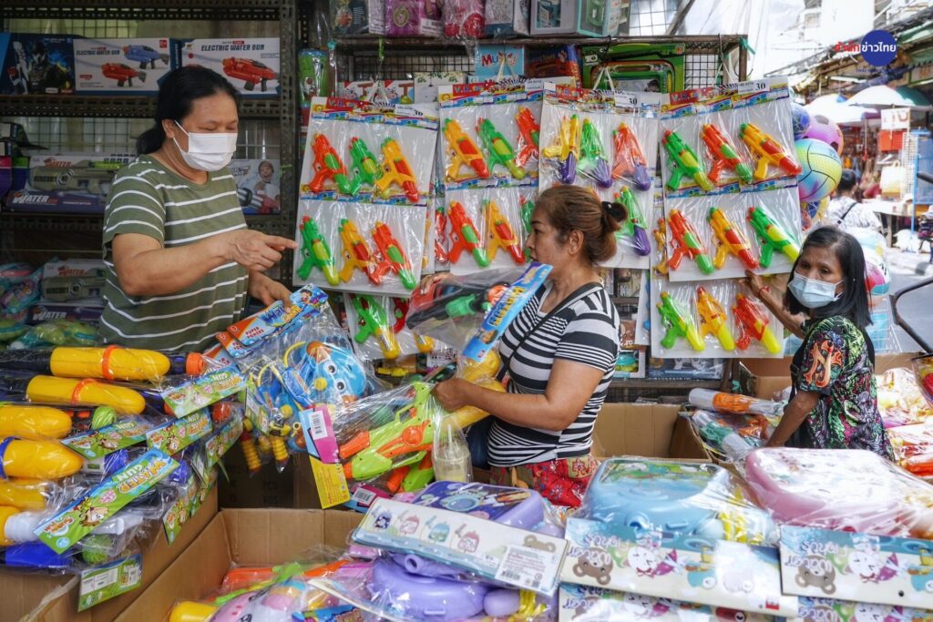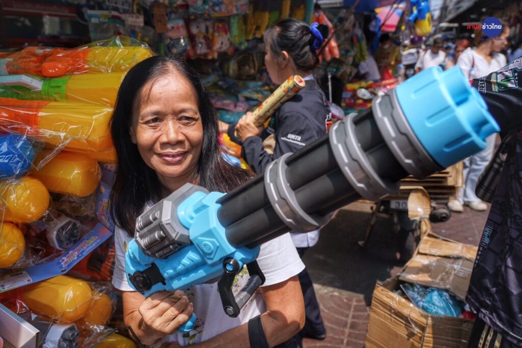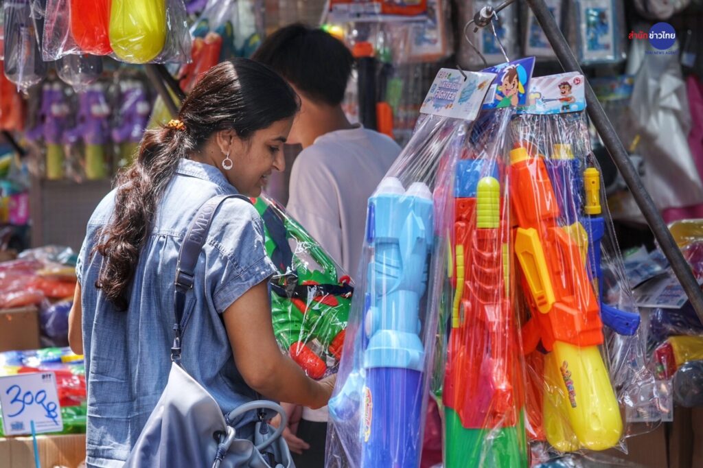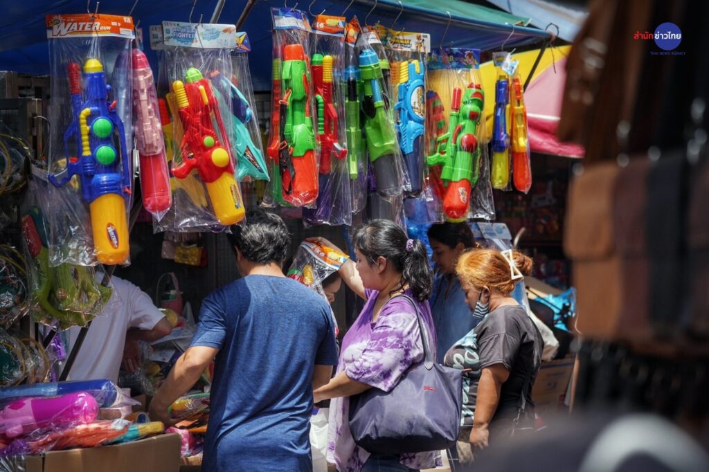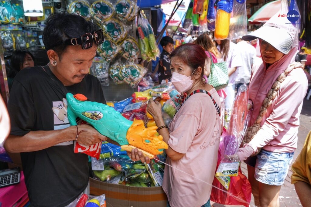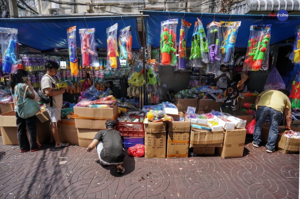 9 เม.ย.2567 บรรยากาศที่ตลาดสำเพ็งเริ่มคึกคัก มีประชาชนมาเดินเลือกซื้อปืนฉีดน้ำ ที่จะใช้เล่นในช่วงเทศกาลสงกรานต์ ซึ่งแต่ละร้านค้า มีปืนฉีดน้ำให้เลือกหลากหลายแบบ ทั้งปืนฉีดน้ำแบบธรรมดาที่มีลวดลายการ์ตูนสีสันสดใส และปืนฉีดน้ำแบบไฟฟ้า ซึ่งจะมีราคาตั้งแต่หลักสิบไปจนถึงหลักร้อย แล้วแต่ขนาด และรูปทรง