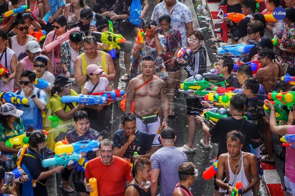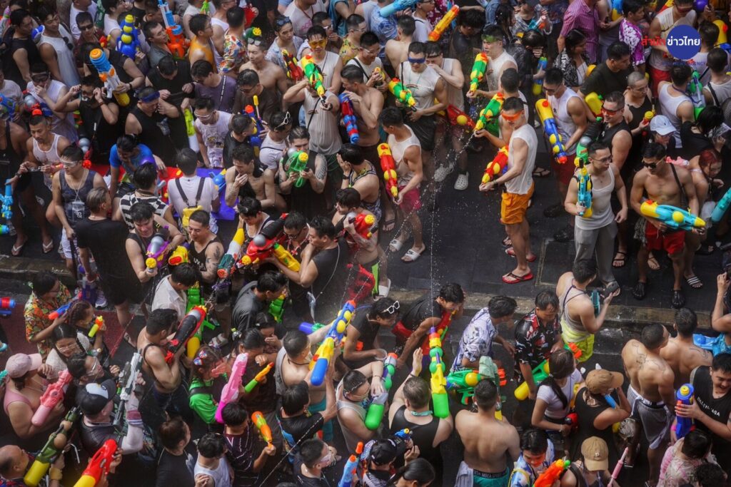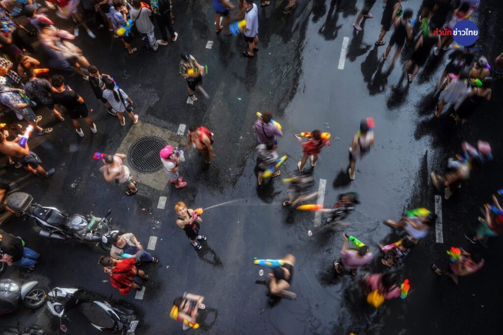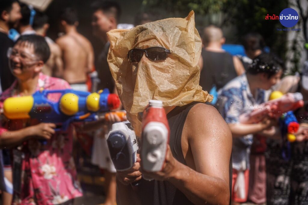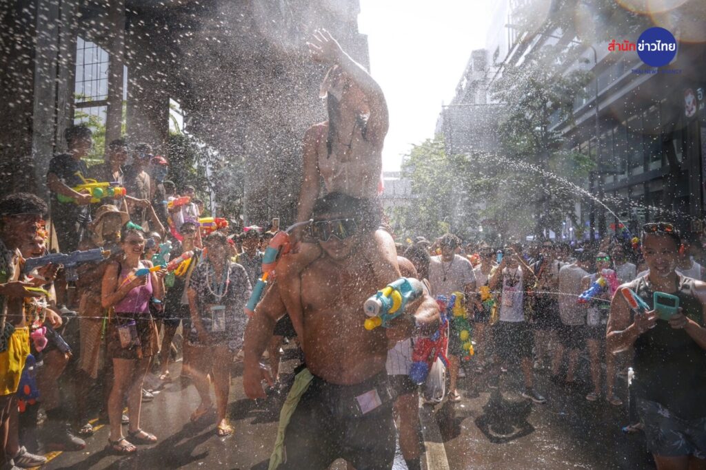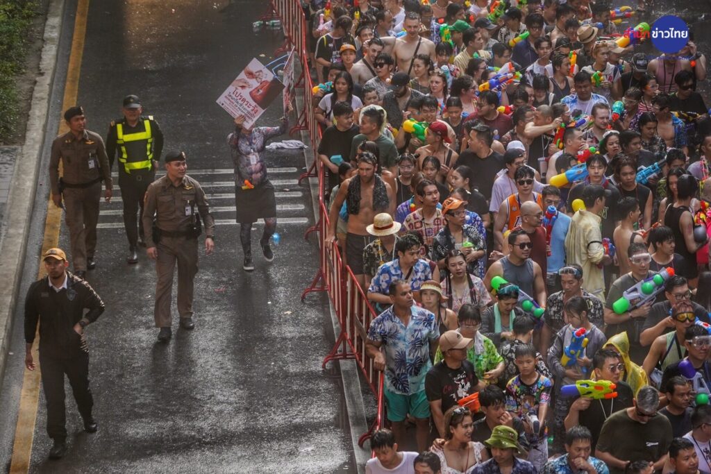 13 เม.ย. – ช่วงเย็น ตั้งแต่ 17.00 น. ประชาชนและนักท่องเที่ยวทั้งฝั่งเอเชีย ยุโรป ยังคงหลั่งไหล เตรียมอุปกรณ์พร้อมเปียก ทั้งเสื้อผ้า แว่นตา ปืนฉีดน้ำ เข้าไปพื้นที่สองฝากฝั่งถนนตั้งแต่แยกศาลาแดง ถึงแยกนรารมย์ ที่ กทม.ปิดถนนให้มวลชนมาเล่นน้ำสงกรานต์อย่างต่อเนื่องไม่มีทีท่าจะหยุด จนตอนนี้ไม่สามารถเดินได้ ต้องไหลไปตามคลื่นมนุษย์