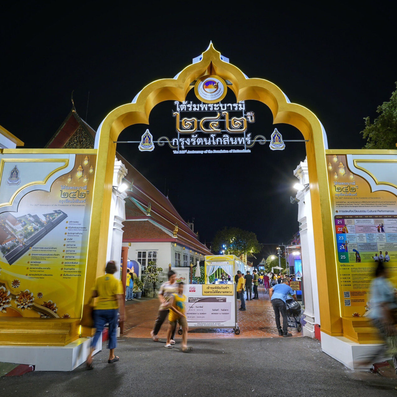 “ใต้ร่มพระบารมี 242 ปี กรุงรัตนโกสินทร์” ชวนประชาชนน้อมรำลึกในพระมหากรุณาธิคุณของสมเด็จบูรพกษัตริย์แห่งพระบรมราชจักรีวงศ์ พร้อมชมกิจกรรมแสงสี ณ บริเวณรอบเกาะรัตนโกสินทร์ สัมผัสบรรยากาศพิพิธภัณฑ์ยามค่ำคืน : ชมนิทรรศการสวนแสงเฉลิมพระเกียรติฯ “เพราะในน้ำมีปลา ในนามีข้าว” ที่จัดแสดงด้วยไอเดียการจัดไฟแบบ “ในน้ำมีปลา ในนามีข้าว” พร้อมทุ่งดอกกุหลาบ