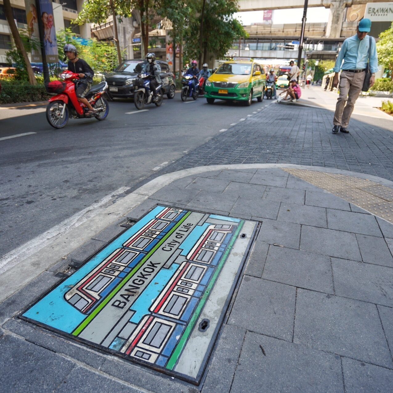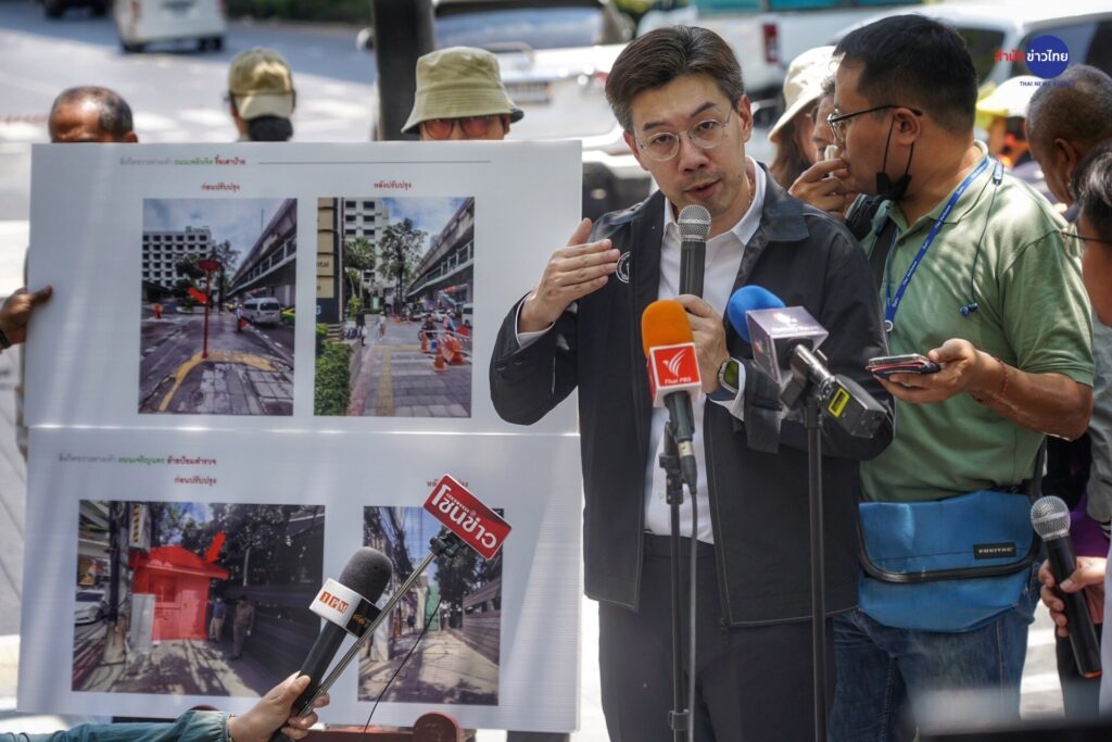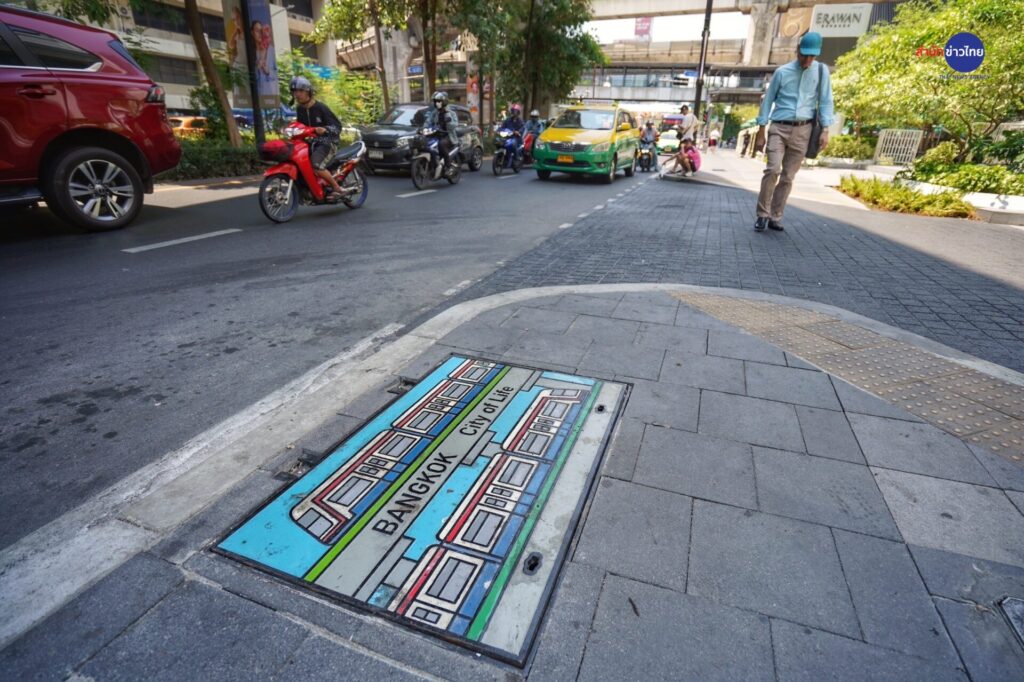 25 เม.ย.67 นายเอกวรัญญู อัมมระปาล โฆษกของกรุงเทพมหานคร พร้อมด้วย นายณัฐพล นาคพันธุ์ ผู้อำนวยการส่วนก่อสร้างและบูรณะ 1 สำนักงานก่อสร้างและบูรณะ สำนักการโยธา นางสาวสุขวิชญาณ์ นสมทรง ผู้อำนวยการเขตปทุมวัน นำคณะสื่อมวลชนสำรวจทางเท้าบริเวณถนนราชดำริและถนนเพลินจิต และชมการปรับปรุงฝาท่อที่ออกแบบให้มีความโดดเด่นและแสดงออกถึงอัตลักษณ์ประจำย่านราชดำริ-เพลินจิต โดยทางเท้าบริเวณนี้ถือเป็นหนึ่งในเส้นทางนำร่องในการใช้มาตรฐานทางเท้าใหม่ที่จะมีความมั่นคงแข็งแรงยิ่งขึ้น มีความเป็น Universal Design มากขึ้น และมีการปรับให้ทางเข้าออกอาคารกับทางเท้ามีความสูงทีใกล้เคียงกัน ให้เดินได้ เดินดี และน่าเดิน โดยในระยะแรกตั้งเป้าไว้ 1,000 กิโลเมตร ผ่าน 3 วิธี คือ การทำใหม่ทั้งเส้นทาง การปรับปรุงซ่อมแซมจุดที่ชำรุดเป็นการเร่งด่วน และการปรับใช้นวัตกรรมให้เหมาะสมกับพื้นที่