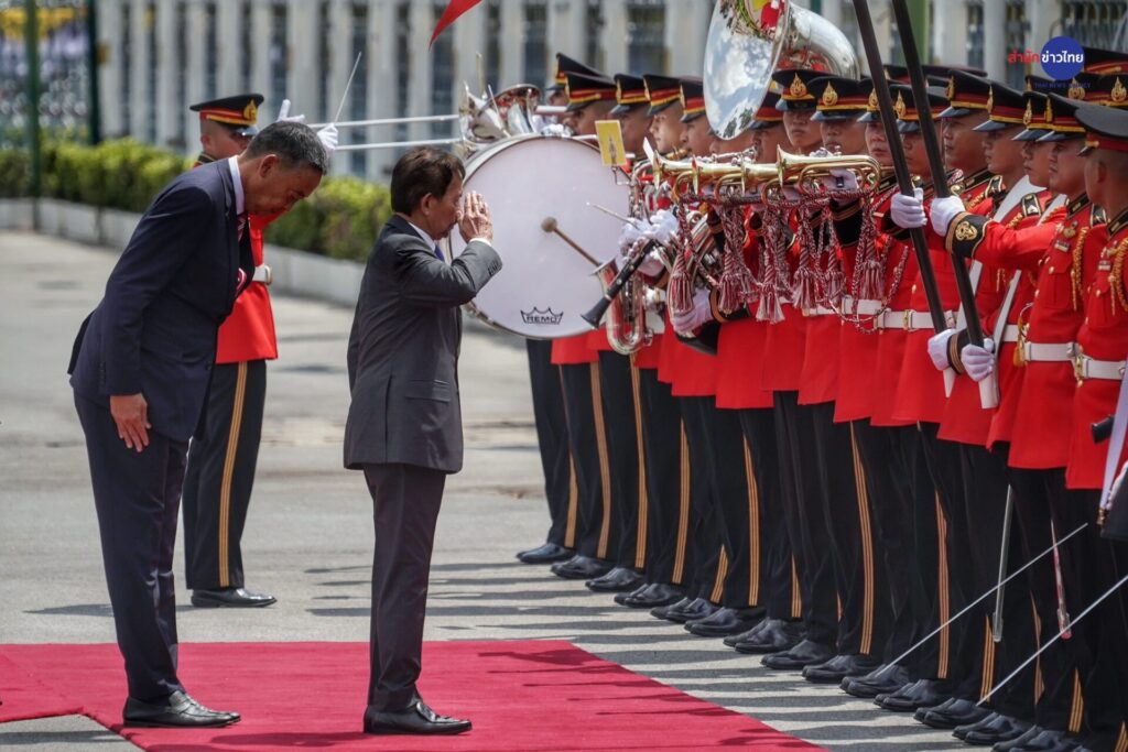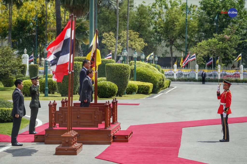 โดยมี นายเศรษฐา ทวีสิน นายกรัฐมนตรี ให้การต้อนรับและนำตรวจแถวกองทหารเกียรติยศ ณ บริเวณสนามหญ้า หน้าตึกไทยคู่ฟ้า ทำเนียบรัฐบาล