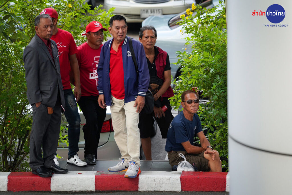บรรยากาศโดยรอบศาล มีคนเสื้อแดงบางส่วน เดินทางมาให้กำลังใจ พร้อมกับสื่อมวลชนที่มารอทำข่าวเป็นจำนวนมาก