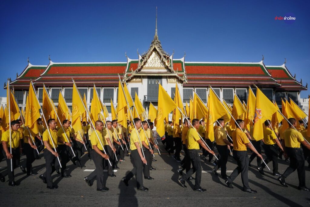 10 ก.ค.67 “มหาดไทย” จัดขบวนพิธีมอบธงตราสัญลักษณ์ เฉลิมพระเกียรติพระบาทสมเด็จพระเจ้าอยู่หัว เนื่องในโอกาสพระราชพิธีมหามงคลเฉลิมพระชนมพรรษา 6 รอบ 72 พรรษา ในวันที่ 28 ก.ค.67 โดยมีนายสุทธิพงษ์ จุลเจริญ ปลัดกระทรวงมหาดไทย รองปลัดกระทรวงมหาดไทย อธิบดีทุกกรม และผู้ว่าราชการจังหวัด (จังหวัดปลายทาง 7 จังหวัด) ร่วมขบวน โดยมีวงดุริยางค์ทหารบก นำขบวนธงตราสัญลักษณ์ เคลื่อนจากหน่วยบัญชาการรักษาดินแดน มายังบริเวณถนนอัษฎางค์ หน้ากระทรวงมหาดไทย ก่อนเข้ายืนประจำจุด ตามลำดับ พร้อมเชิญธงตราสัญลักษณ์ฯ ประดับ ณ แท่นวางธง