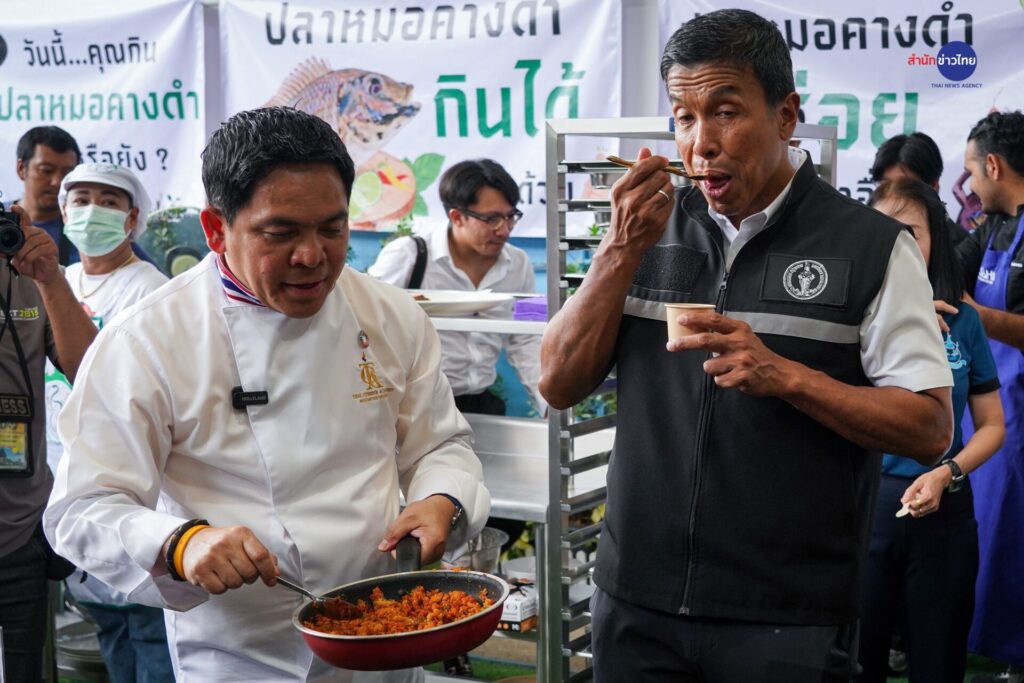 ซึ่งวันนี้ทางเขตบางขุนเทียน ได้รังสรรค์เมนูอาหาร จากปลาหมอคางดำ ได้แก่ ปลาหมอคางดำราดซอสเปรี้ยวหวาน ปลาหมอคางดำทอดเกลือ ฉู่ฉี่ปลาหมอคางดำ แกงส้มปลาหมอคางดำ ปลาร้าจากปลาหมอคางดำ มาแจกแบ่งปันให้ประชาชนกลุ่มเปราะบาง นอกจากนี้ภายในงานยังได้ 2 เชฟคนดัง เช่น เชฟชุมพล แจ้งไพร เชฟมือรางวัลมิชลินไกด์ และ เชฟเมธัส ปาทาน จากสหสเตนเลสสตีล มาสาธิตการทำเมนูปลาหมอคางดำ ในรูปแบบต่างๆใก้ได้ชิมกันด้วย