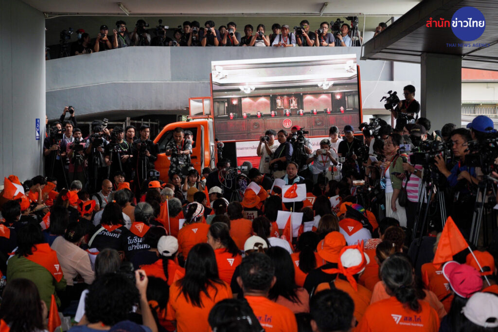 คณะตุลาการศาลรัฐธรรมนูญ ออกนั่งบัลลังก์อ่านคำวินิจฉัยในคดีที่คณะกรรมการการเลือกตั้ง ขอให้ศาลรัฐธรรมนูญพิจารณาวินิจฉัยเพื่อมีคำสั่งยุบพรรคก้าวไกล และเพิกถอนสิทธิสมัครรับเลือกตั้งของบุคคลผู้เป็นคณะกรรมการบริหารพรรค และห้ามมิให้ผู้ซึ่งดำรงตำแหน่งคณะกรรมการบริหารพรรค และถูกเพิกถอนสิทธิสมัครรับเลือกตั้งไปจดทะเบียนพรรคการเมืองขึ้นใหม่ หรือเป็นกรรมการบริหารพรรคการเมืองหรือมีส่วนร่วมในการจัดตั้งพรรคการเมืองขึ้นใหม่ภายในกำหนด 10 ปี นับแต่วันที่ศาลรัฐธรรมนูญมีคำสั่ง ตาม พ.ร.ป ว่าด้วยพรรคการเมือง 2560 มาตรา 92 วรรคสอง และมาตรา 94 วรรคสอง